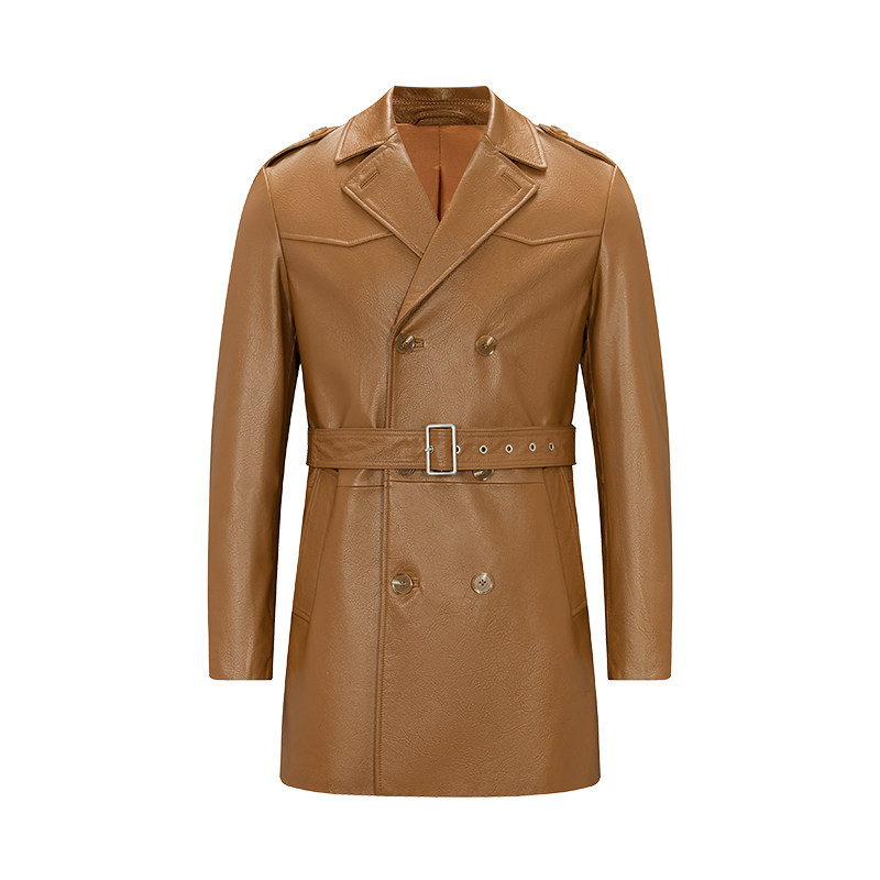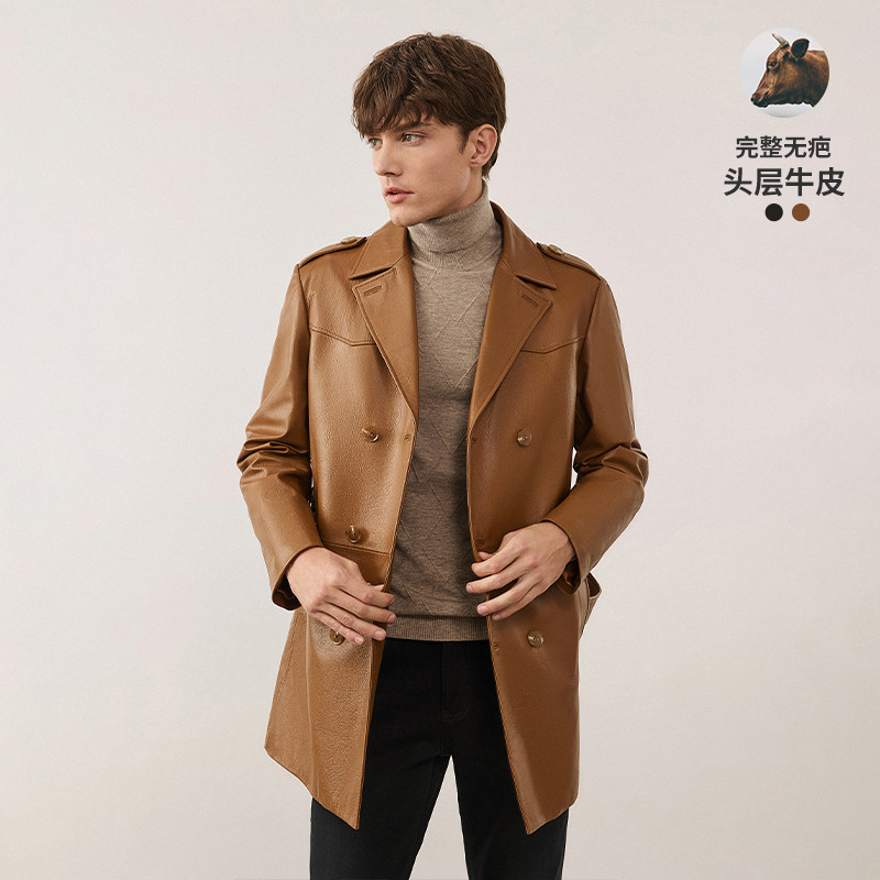 Navigare意大利小帆船美拉德皮衣男长袖休闲中长款牛皮风衣外套