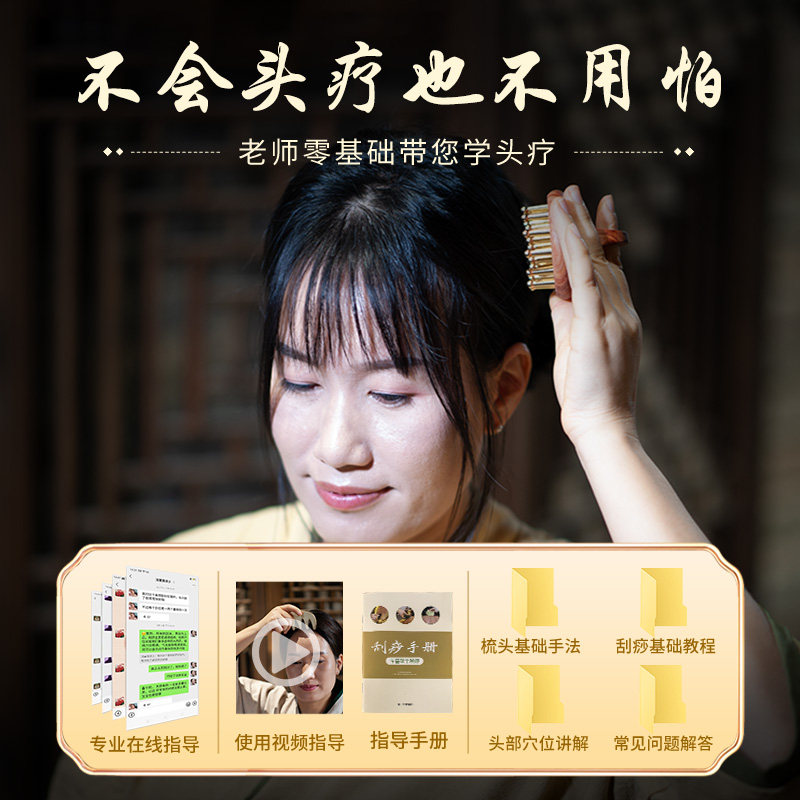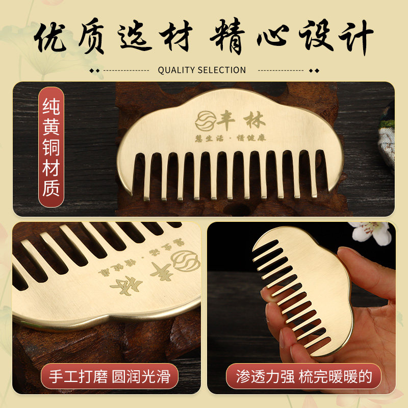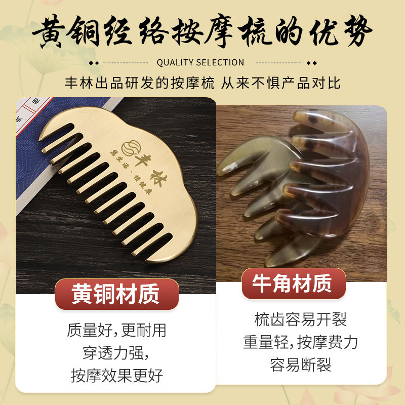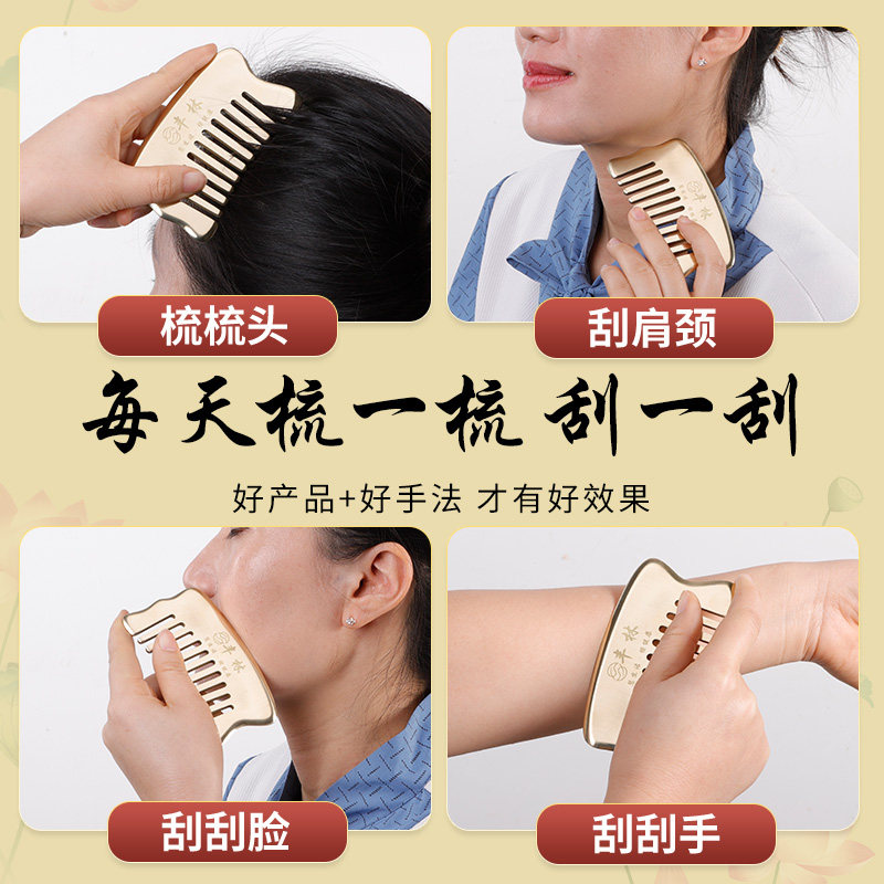 头部经络按摩梳头疗头皮穴位疏通经络专用大宽齿纯黄铜刮痧板