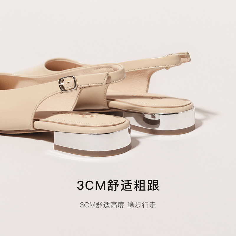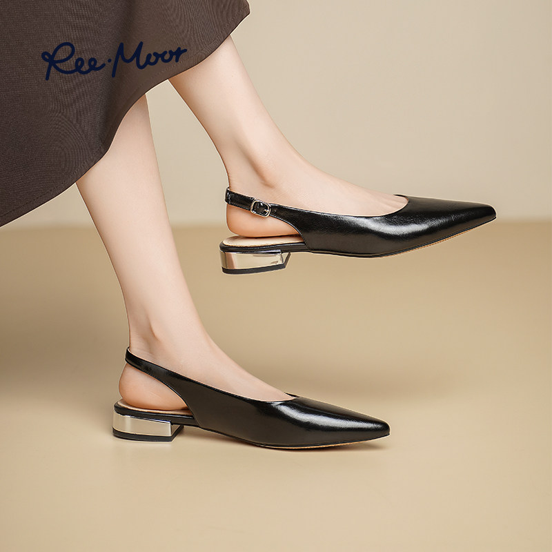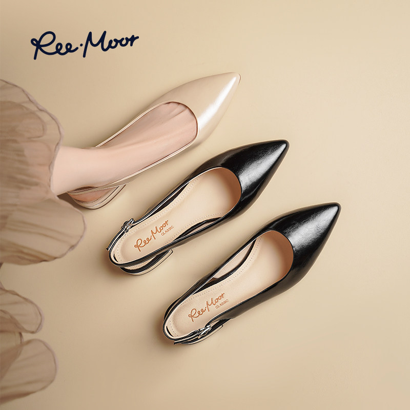 REEMOOR睿慕2025夏季新款尖头粗跟单鞋女漆皮简约时尚包头后空鞋