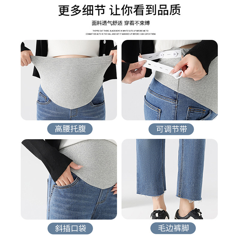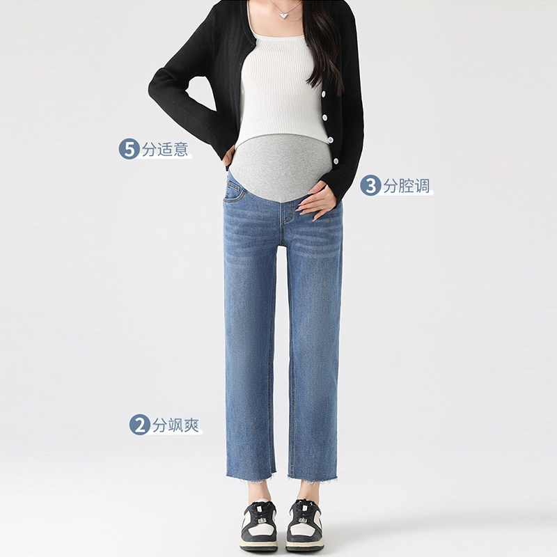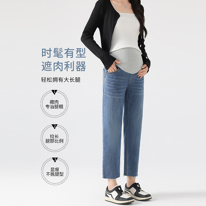 婧麒孕妇裤春装2026新款外穿毛边牛仔直筒裤小个子不勒肚子休闲裤