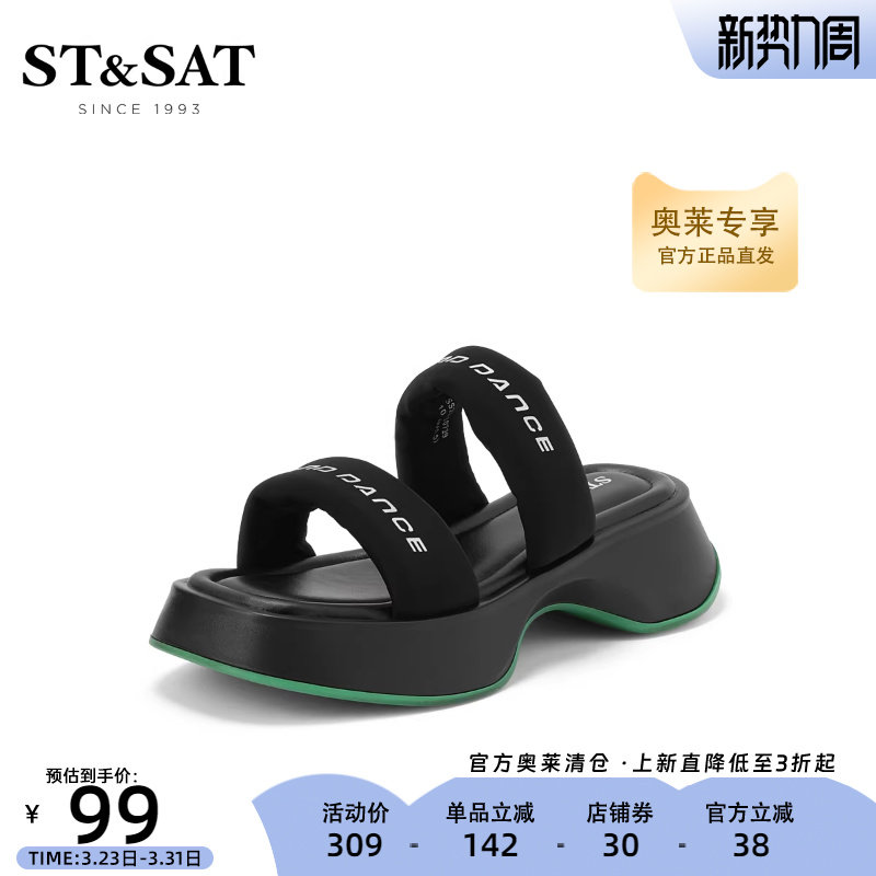 St&Sat/星期六一字拖夏季新款坡跟厚底英伦风女拖SS22110729