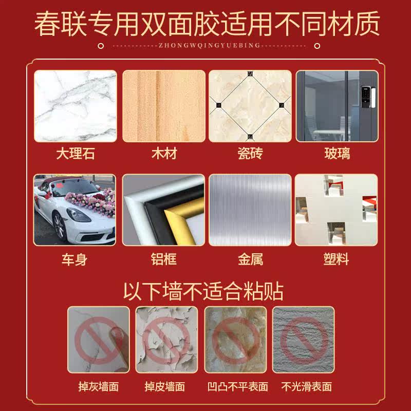 对联专用双面胶贴家用自粘无痕贴春联双面胶粘喜字新年婚庆婚车纳米胶带双面贴通用透明盒装固定胶无痕胶