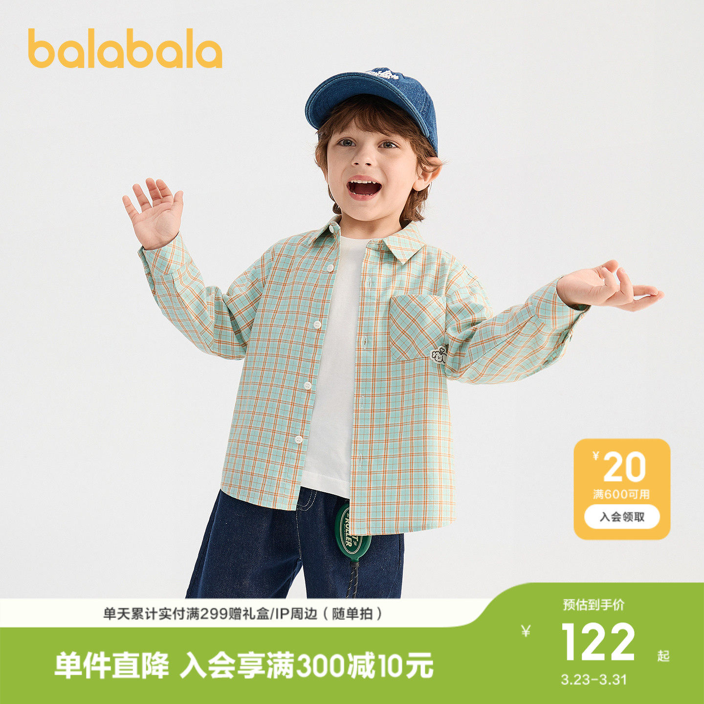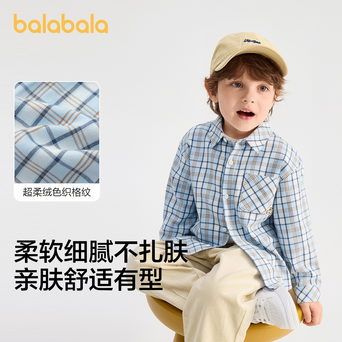 【商场同款】巴拉巴拉儿童长袖衬衫男女童2026年新款春装格纹上衣