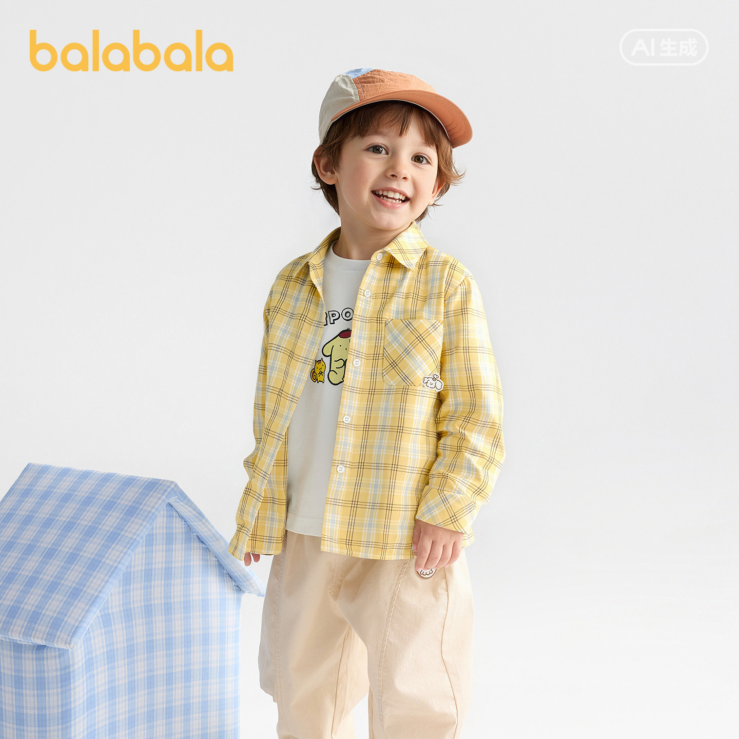经典格纹衬衫,萌趣卡通织标