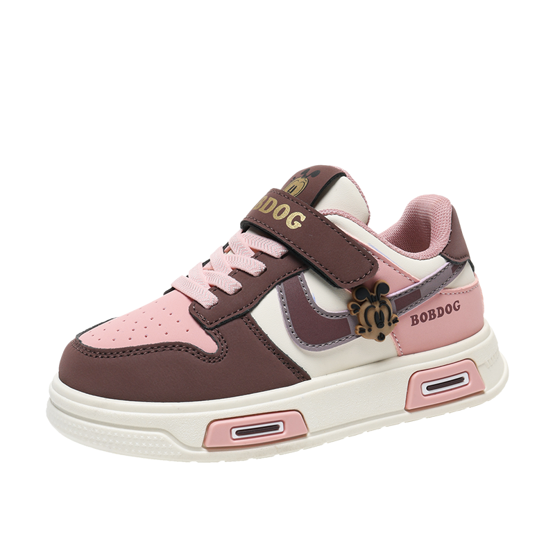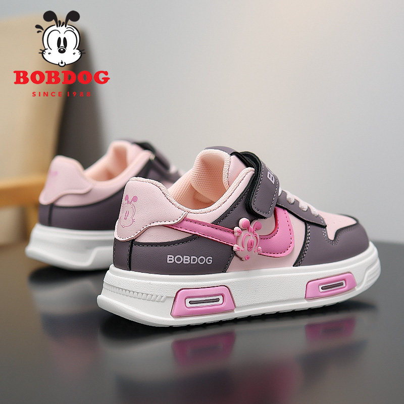 巴布豆女童鞋春秋季2025新款皮面儿童板鞋女孩鞋子运动鞋魔术贴