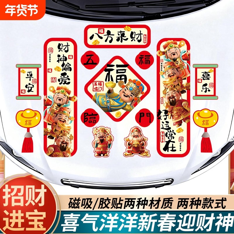 马年对联磁吸性车贴2026新年财神爷福字电动汽车贴春联车门窗贴纸