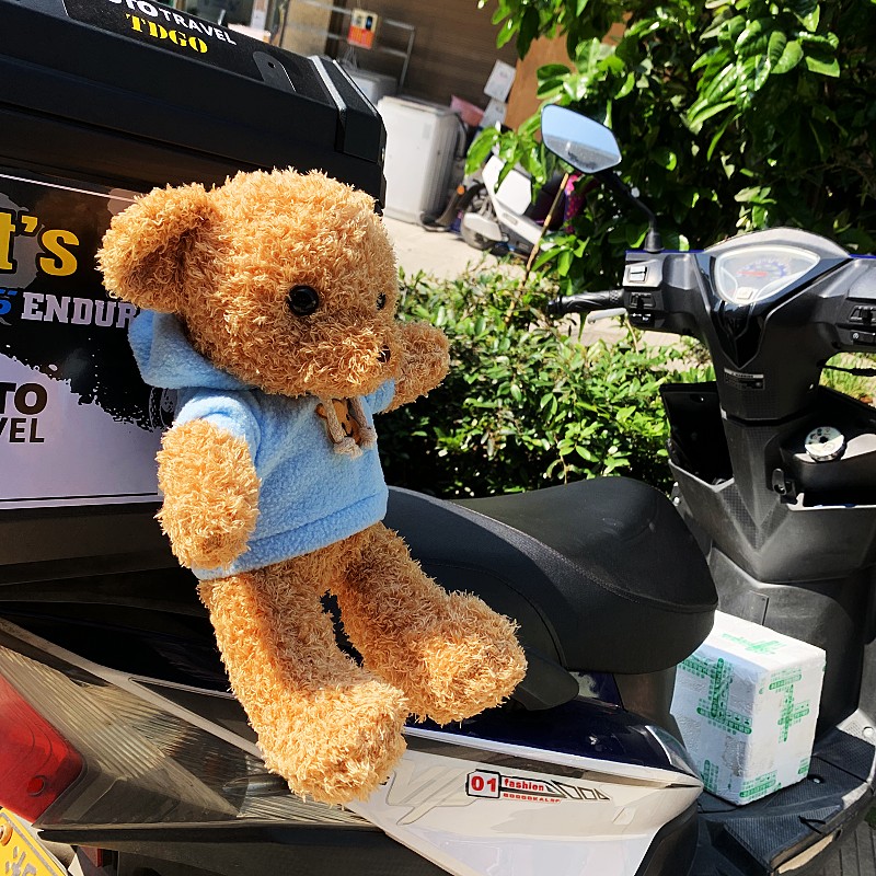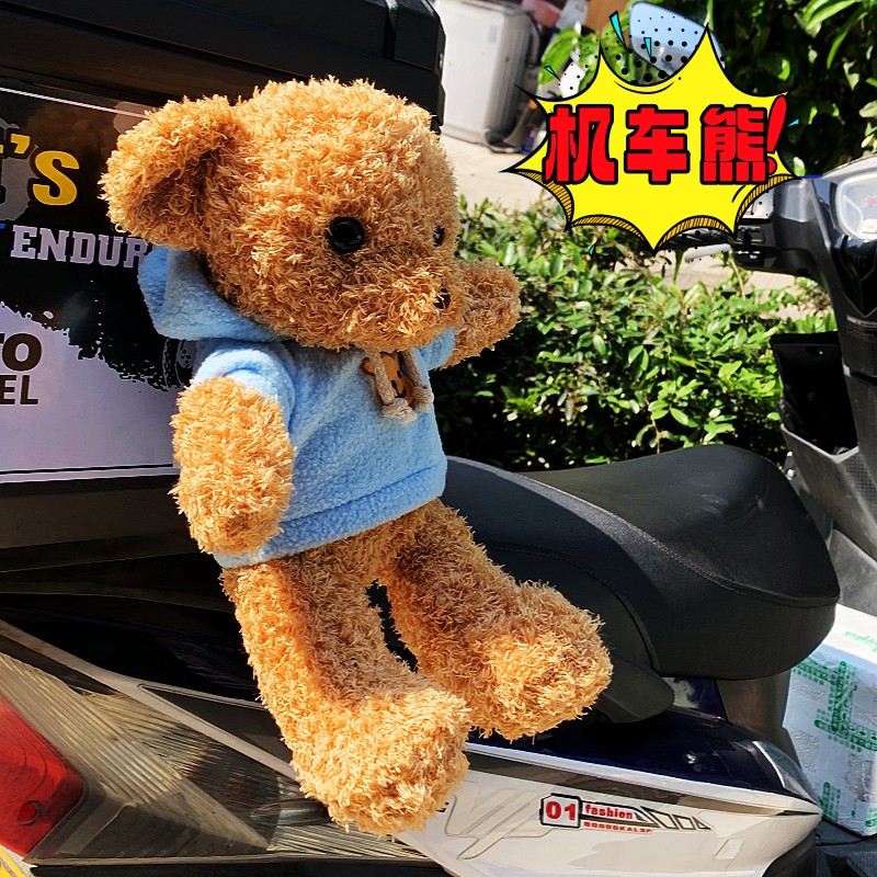 机车熊公仔摩托车尾箱玩偶头盔装饰毛绒玩具车外挂件尾箱电动车