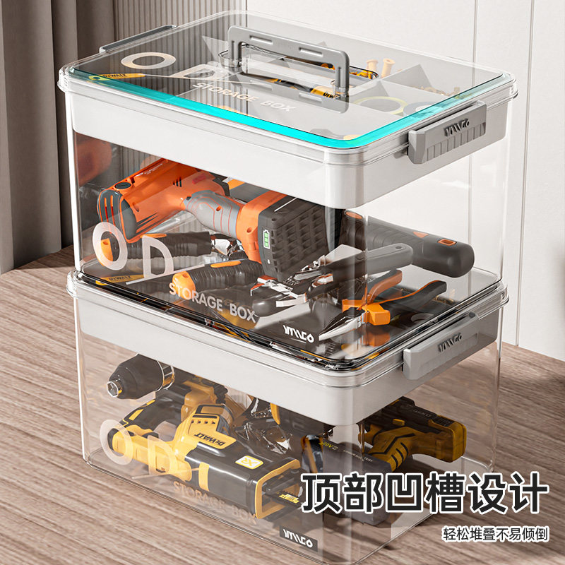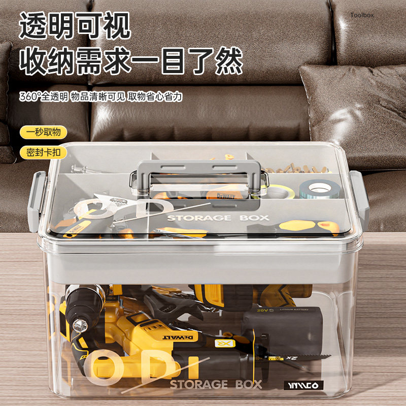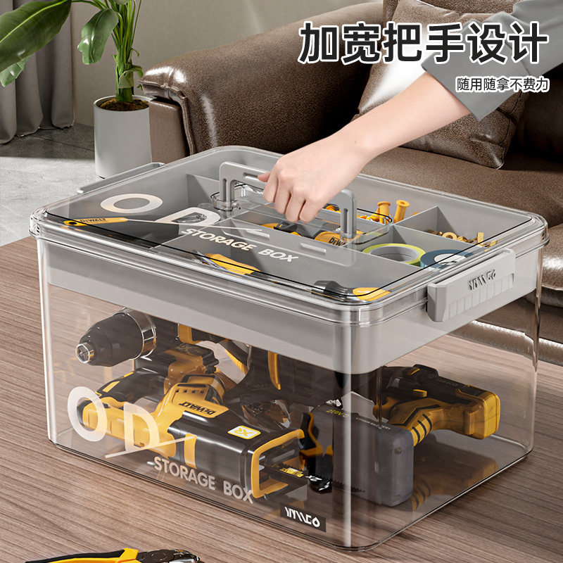 工具箱家用透明收纳盒多功能手提式零件杂物五金整理盒双层收纳箱