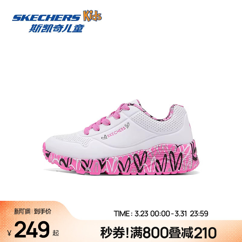 Skechers斯凯奇儿童UNO系列时尚板鞋春夏新款女童涂鸦休闲运动鞋