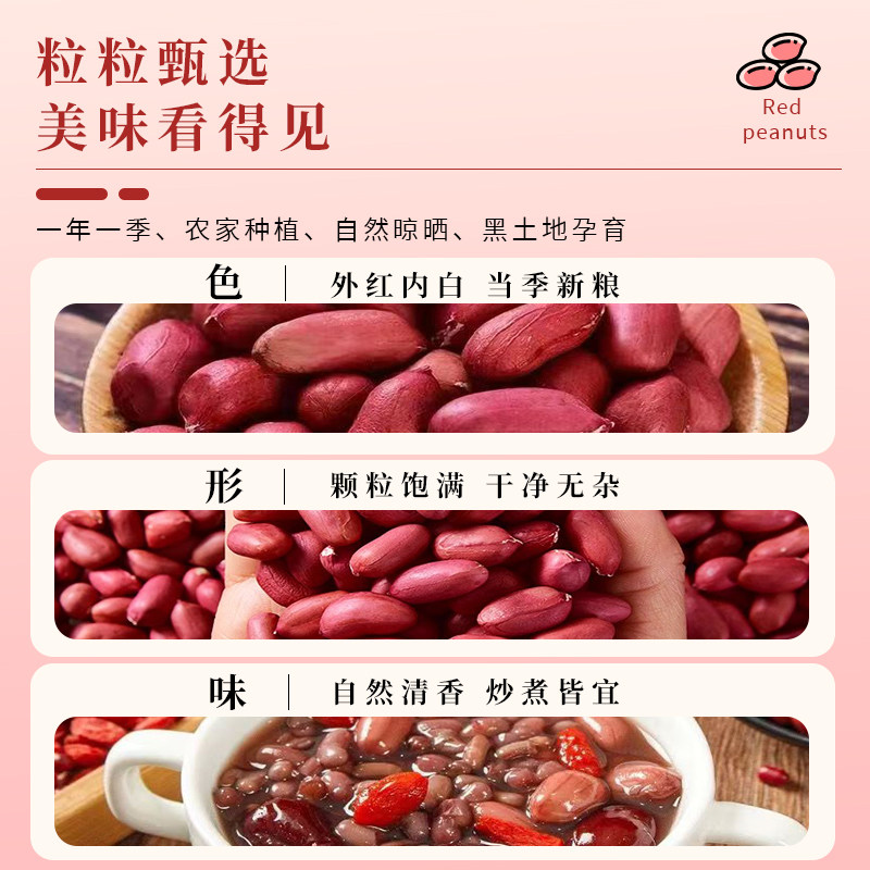 新鲜红皮带壳生花生四粒红花生米农家自种晒干货高产花生红皮花生