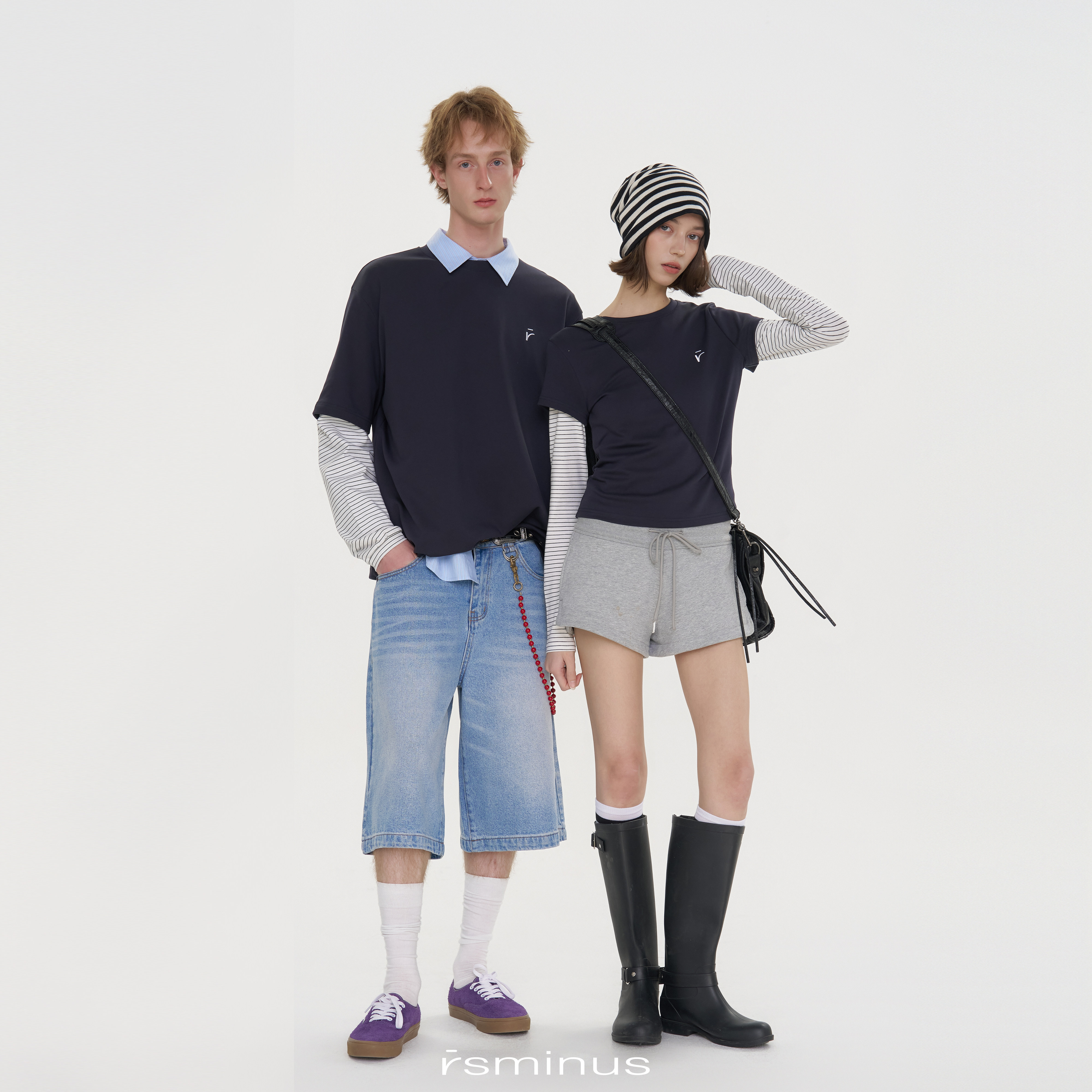 riverstone男女同款假两件拼接撞色打底条纹长袖T恤2026春季新款
