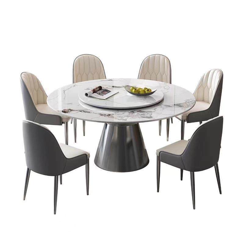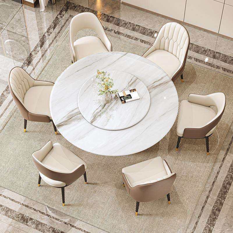 轻奢天然超晶石餐桌椅组合微晶石圆桌现代简约家用岩板餐桌小户型