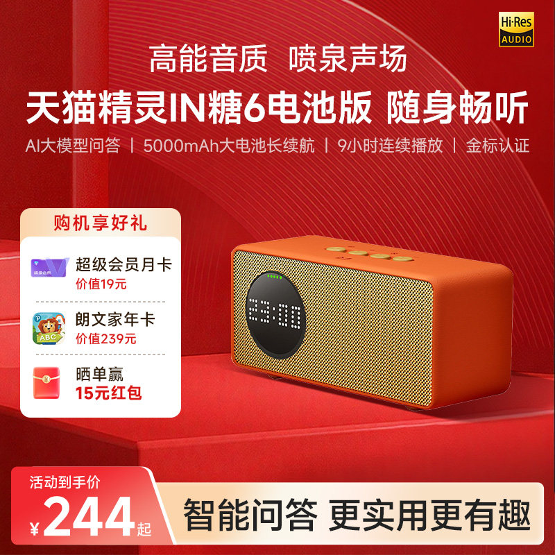 【送会员】天猫精灵IN糖6电池版智能音箱AI大模型问答 年货送礼