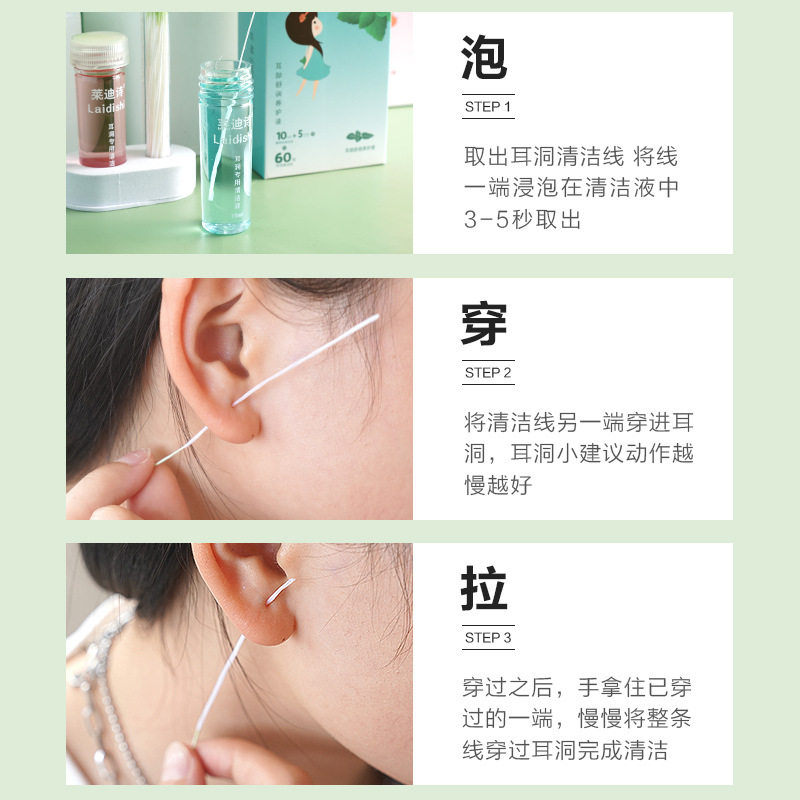 耳洞清洁线日本清理耳洞护理液防堵去异味清洗耳朵美容耳机清洁笔