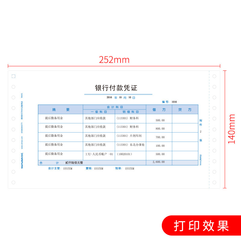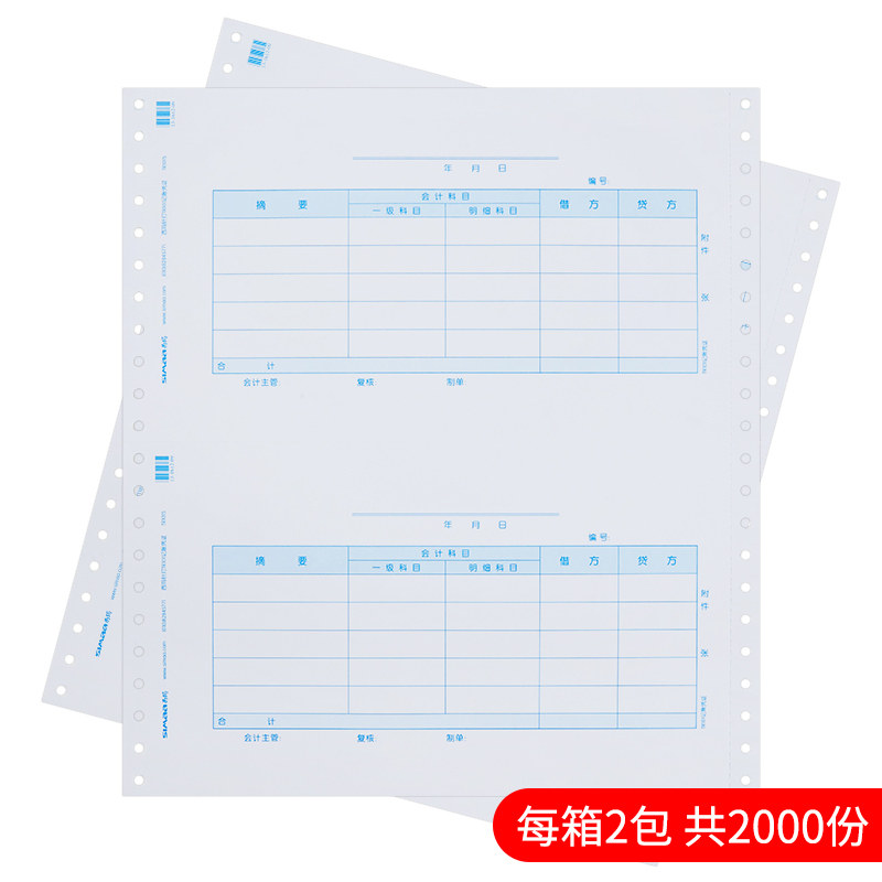 用友官方旗舰店TR101S记账凭证纸打印纸 针式针打电脑账册2000份 用友软件适用财务通用办公用品 252*140mm