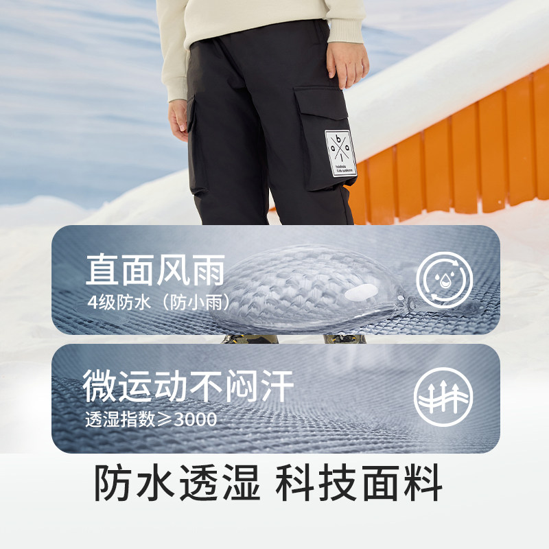 雪中飞男童羽绒裤儿童冬季新款中大童女童户外工装保暖儿童长裤子