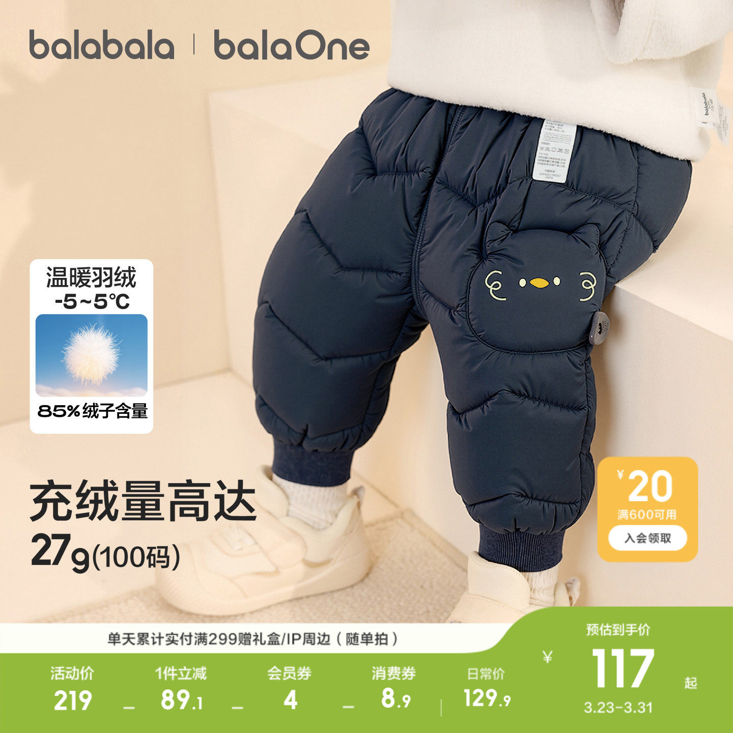 巴拉巴拉童装儿童羽绒裤婴儿男童女童长裤宝宝保暖2026冬装裤子萌