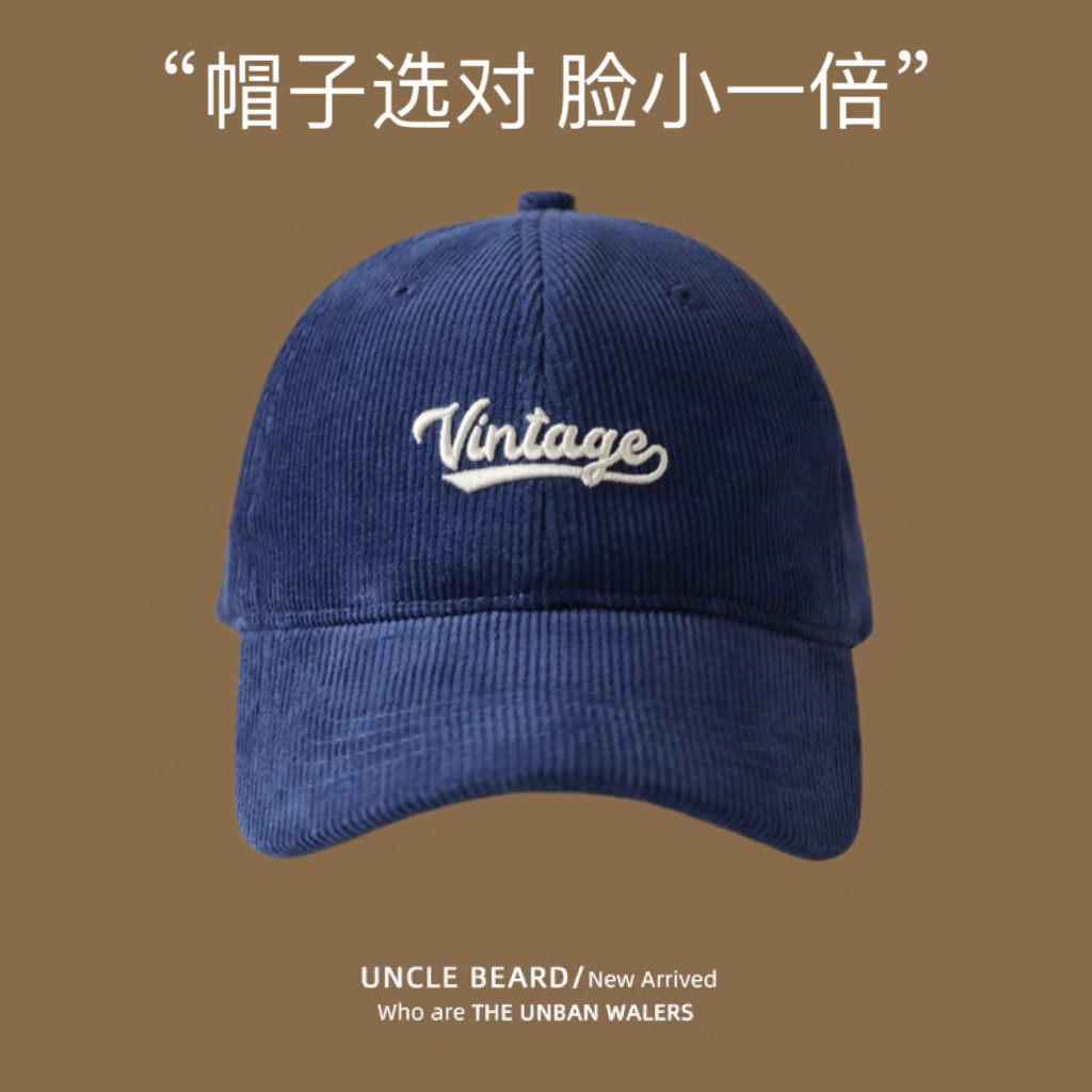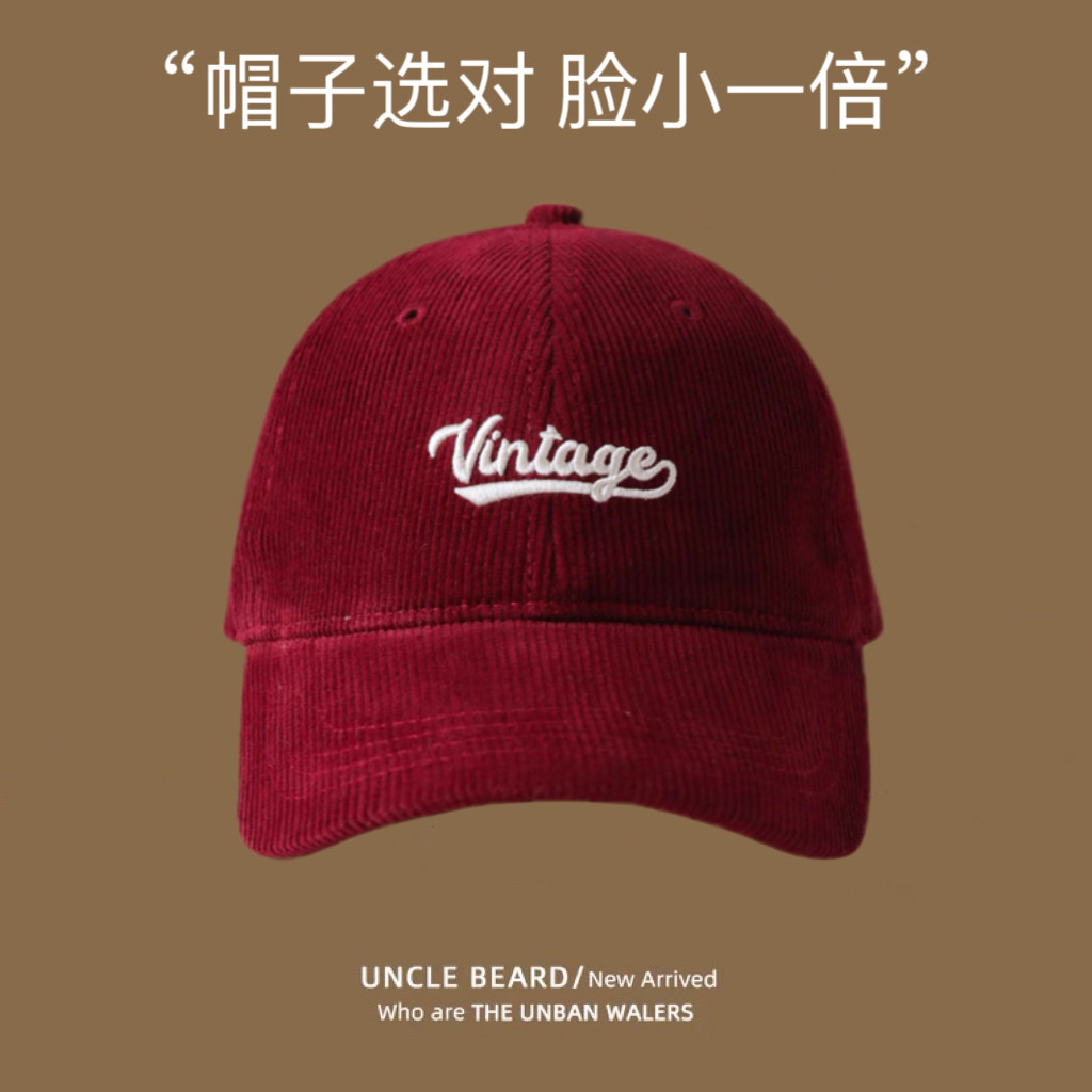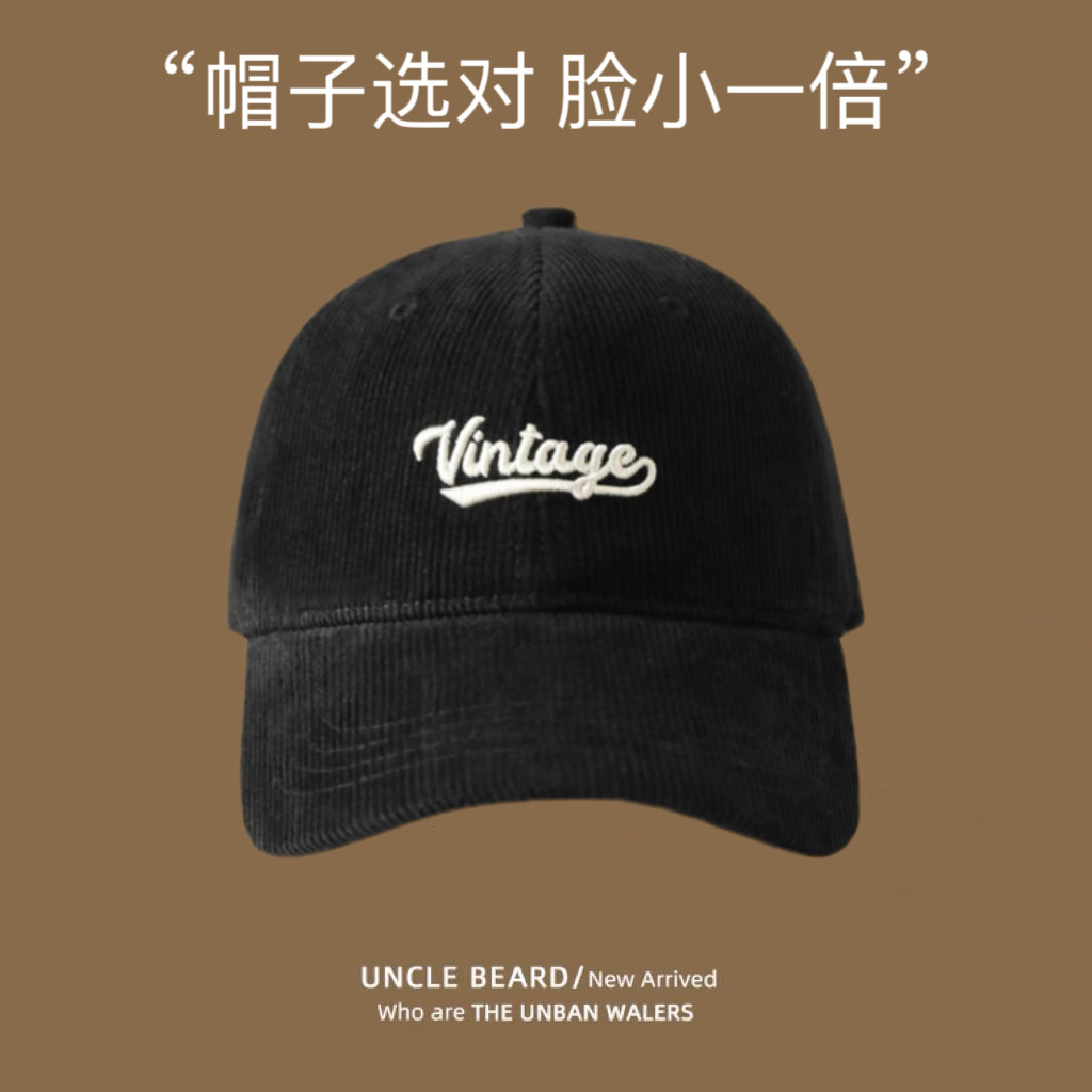 秋冬灯芯绒棒球帽软顶帽子大头围深帽桶鸭舌帽男女生帽子