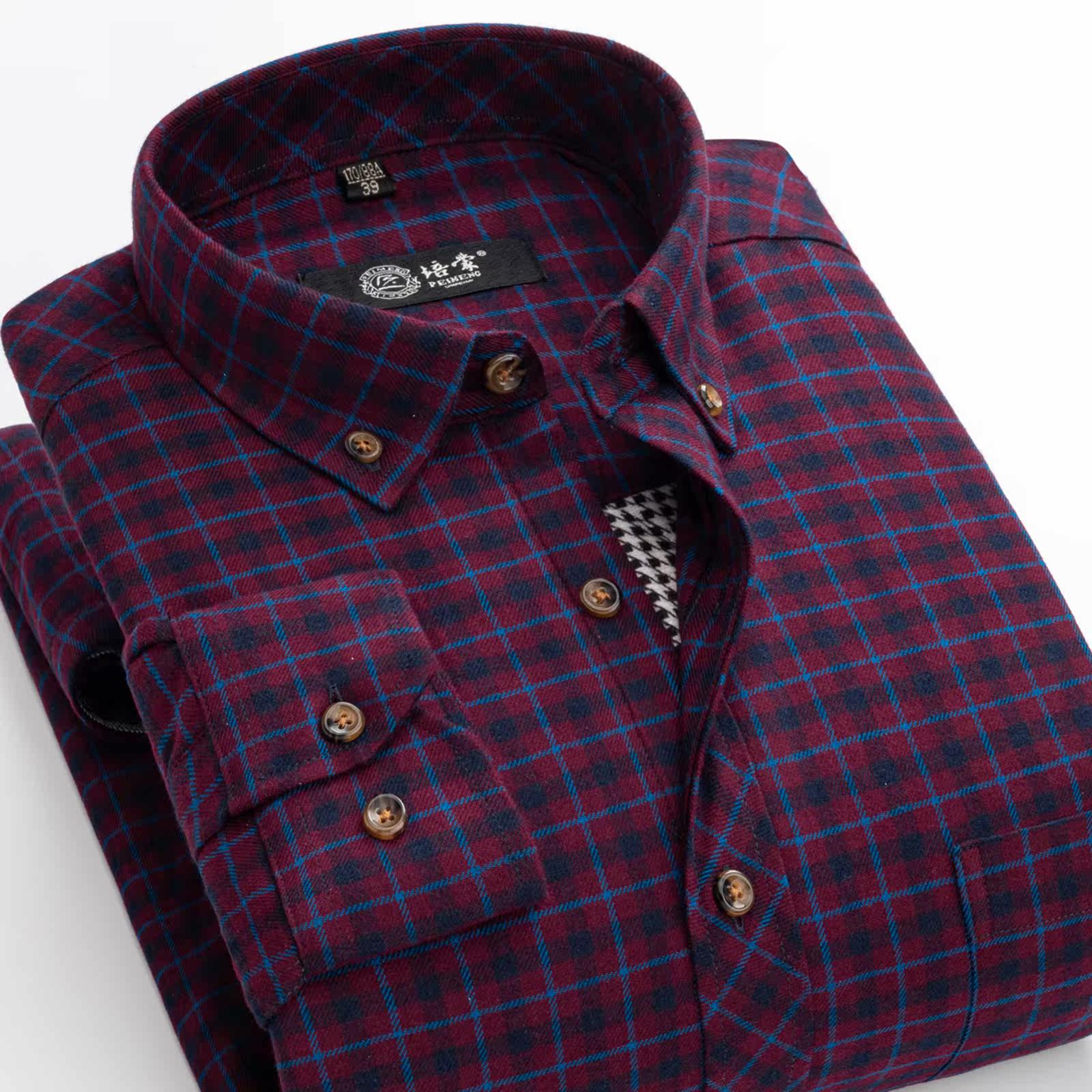 培蒙男士式保暖衬衫夹棉加厚全棉纯棉磨毛格子桑蚕丝衬衣爸爸款