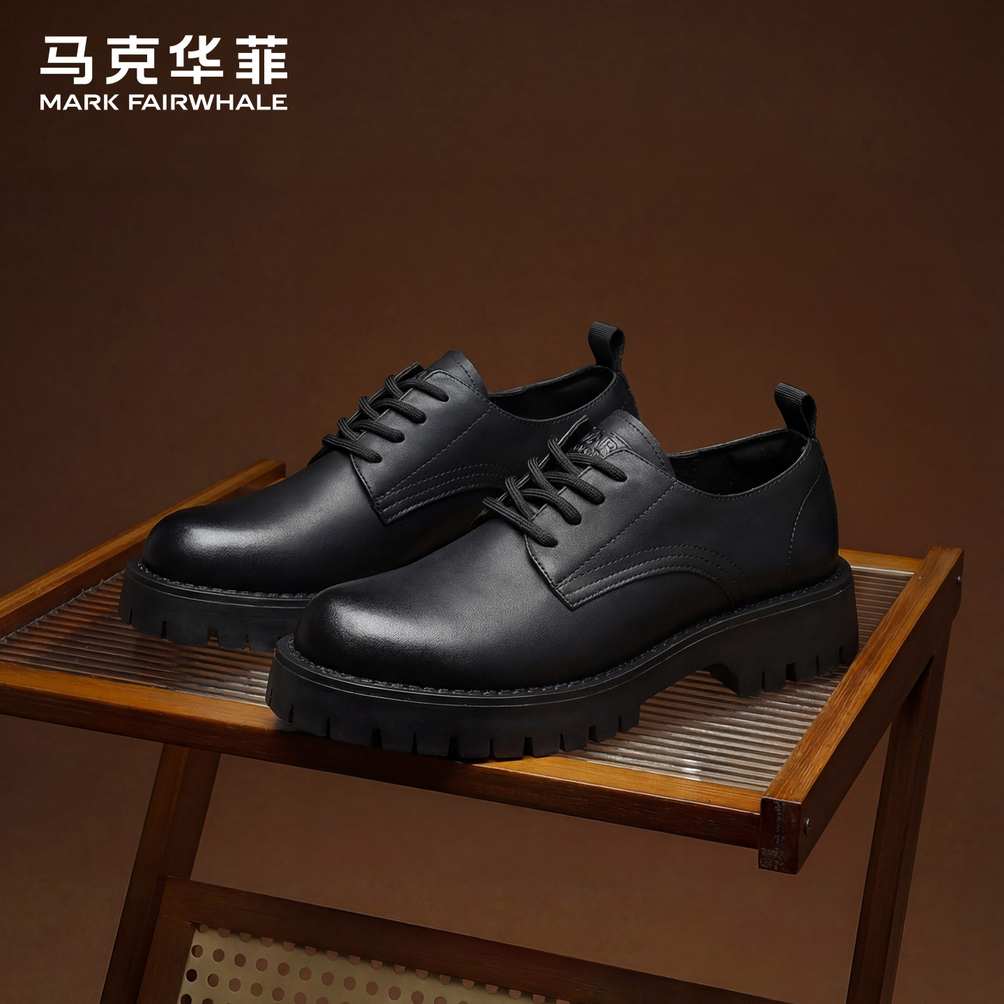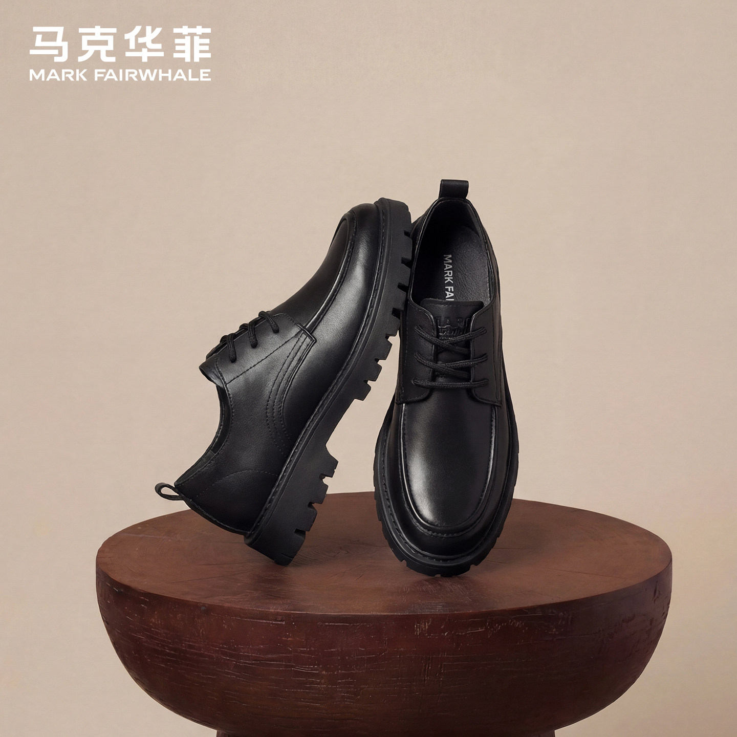 马克华菲皮鞋男休闲厚底男鞋2026新款大头鞋子男款增高男士德比鞋