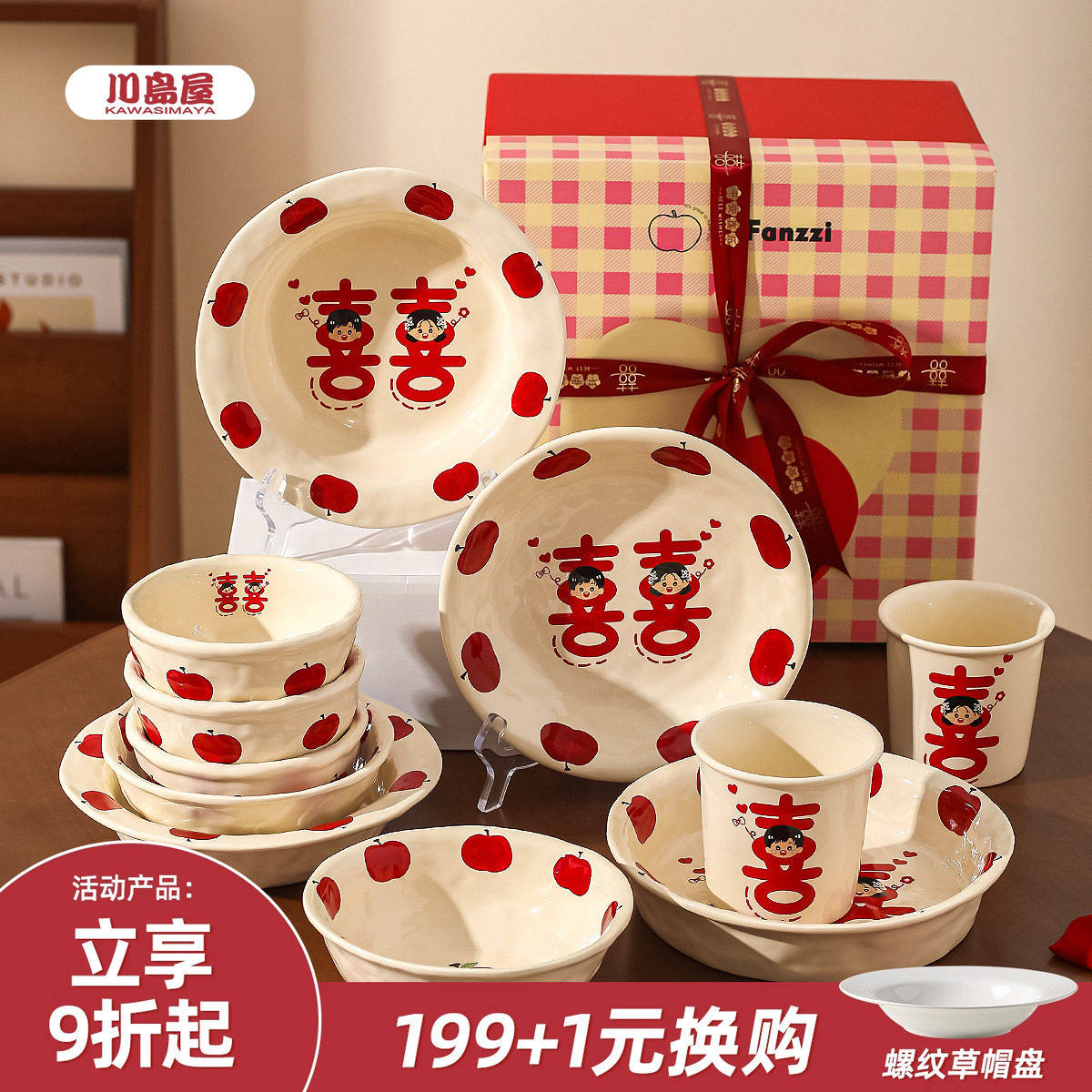 川岛屋新婚餐具套装订婚结婚礼物送新人新娘红色喜碗碗筷碗具礼盒
