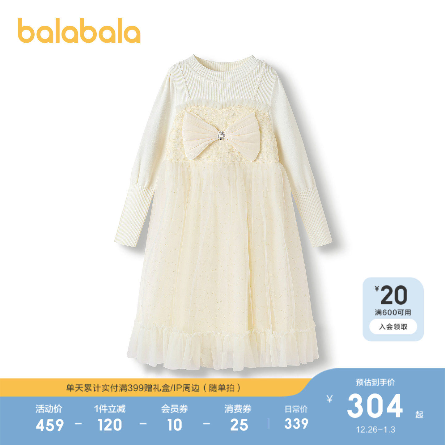 【商场同款】巴拉巴拉童装连衣裙女童2025秋冬装新款针织网纱裙子