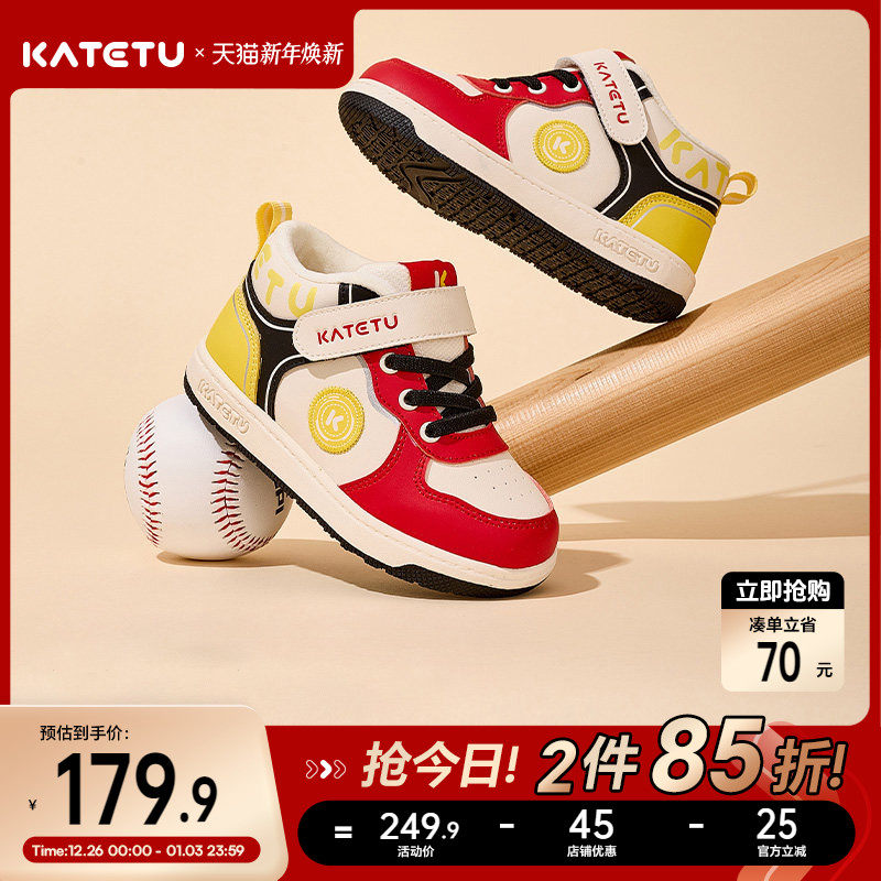 卡特兔儿童板鞋男童高帮鞋2025冬季新款幼儿园小白鞋女童加绒棉鞋