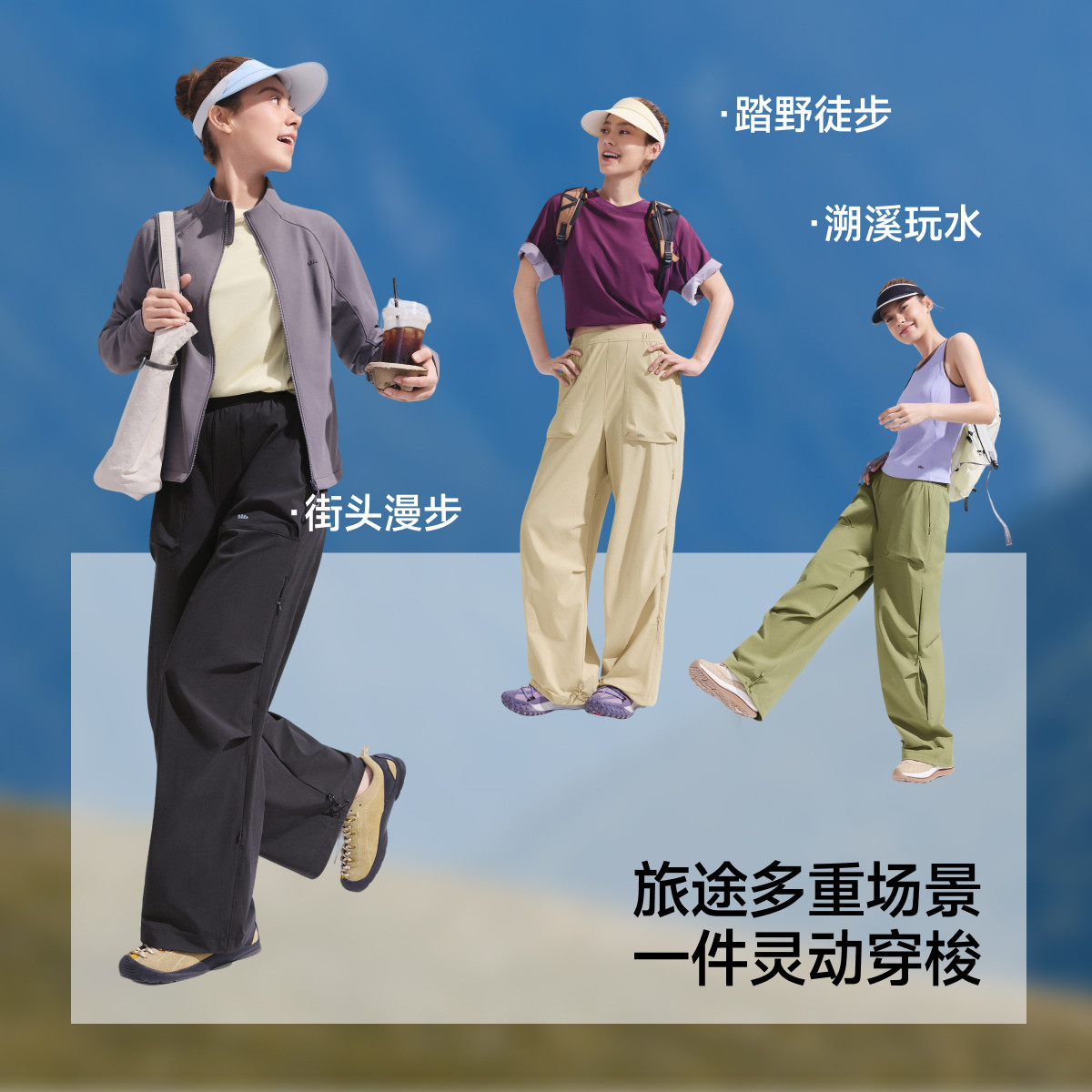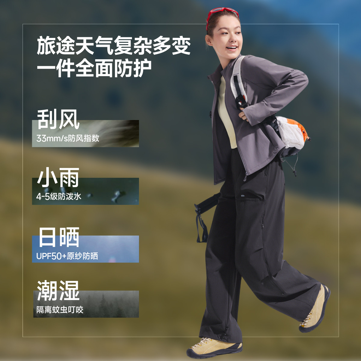 蕉下两穿冲锋裤女春季新款可调节长短户外徒步耐磨透气防晒伞兵裤
