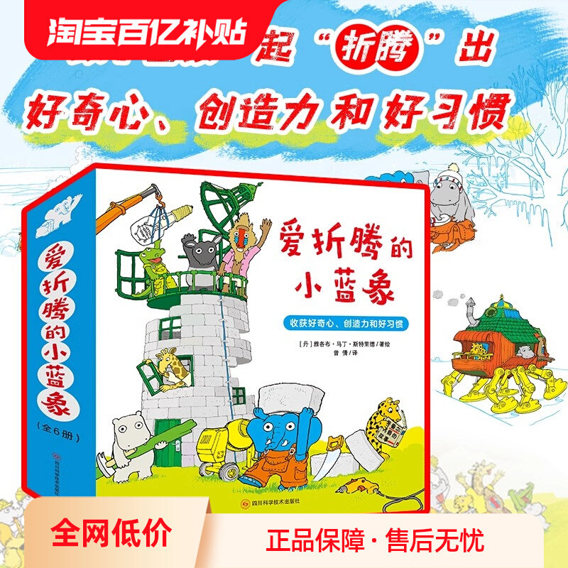 北斗正版爱折腾的小蓝象全6册激发好奇心创造力和好习惯会走路的房子米米波建灯塔神秘的包裹3-6岁儿童创意教育绘本雅各布艾拉故事
