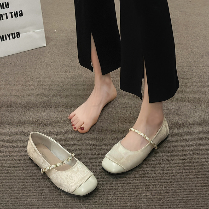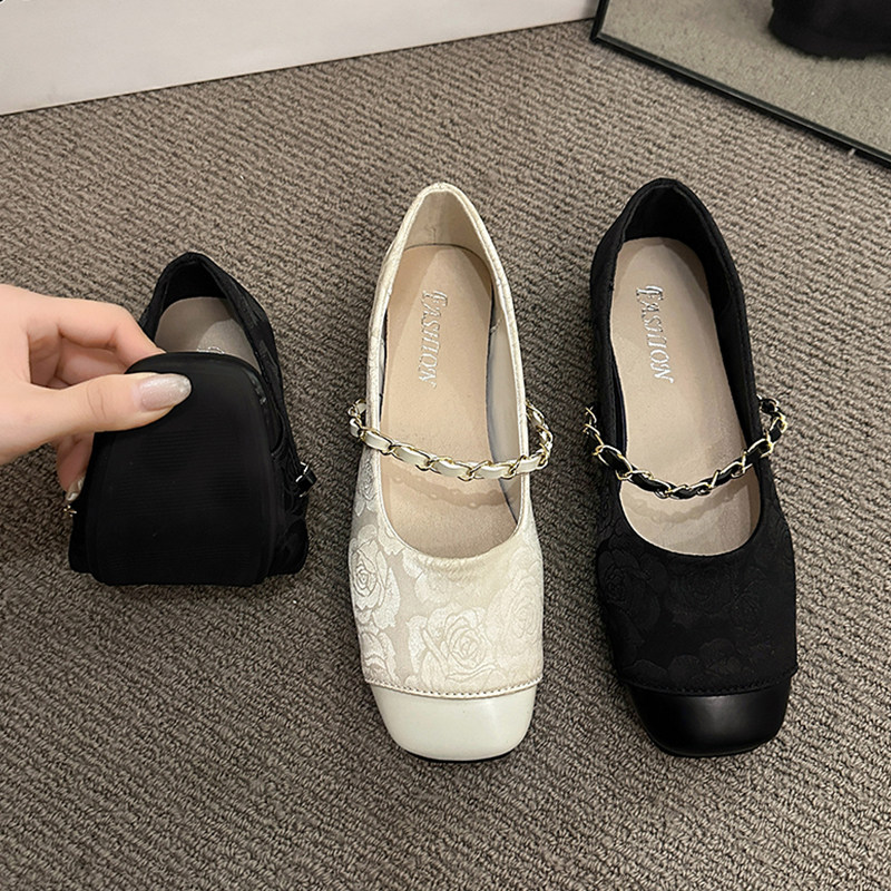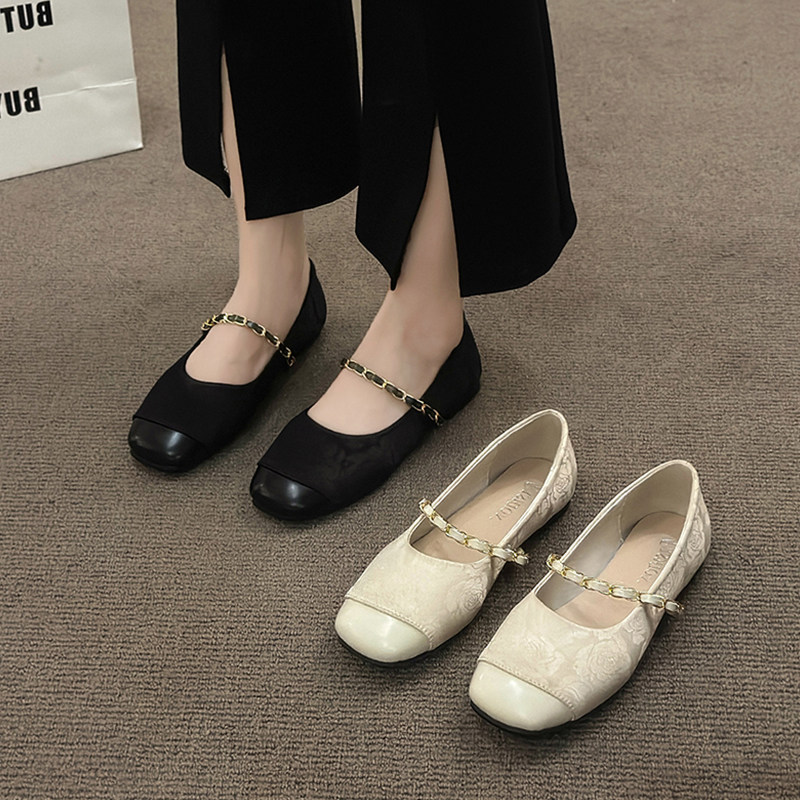 单鞋女新中式2026国风春秋季新款平底配裙子刺绣旗袍玛丽珍鞋黑色