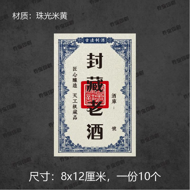 酒标贴纸不干胶珍藏酒酒瓶标签私藏酒封藏洞藏窖藏珠光效果白酒贴
