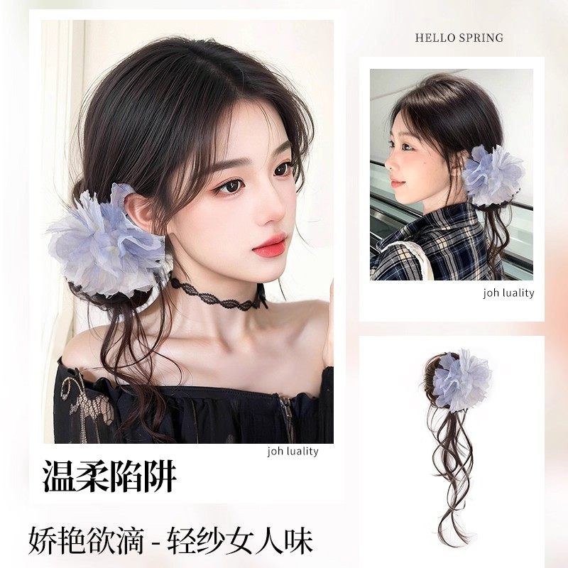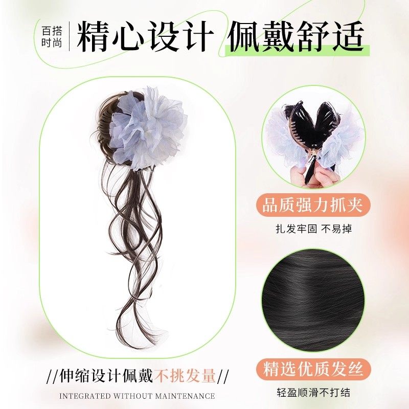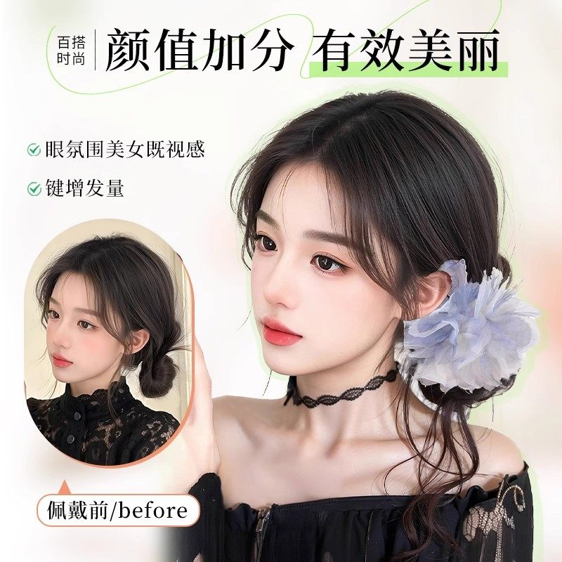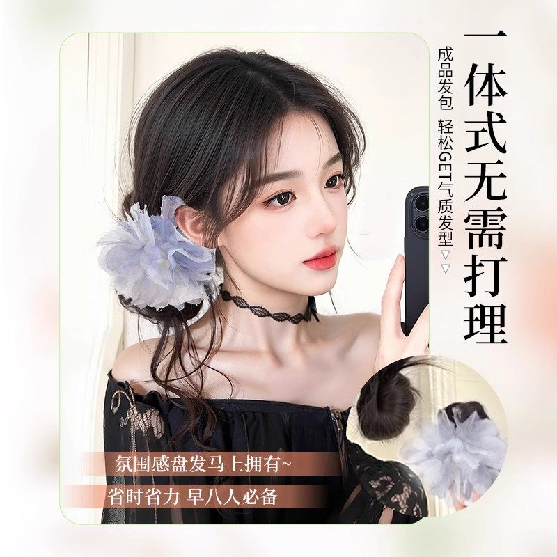 丸子头假发女羽毛花朵龙须发包抓夹女感侧扎后脑勺发圈盘发造型