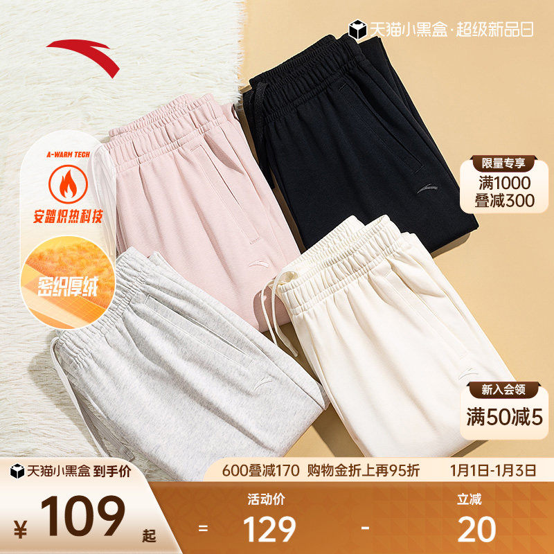 安踏束脚裤 | 加绒保暖针织运动长裤女裤冬季直筒运动裤休闲卫裤