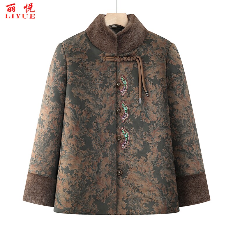妈妈秋冬装德绒保暖棉衣短款加厚内胆中老年人女薄款小棉袄可外穿