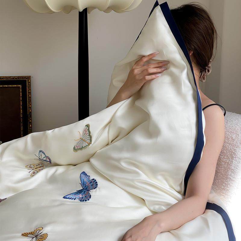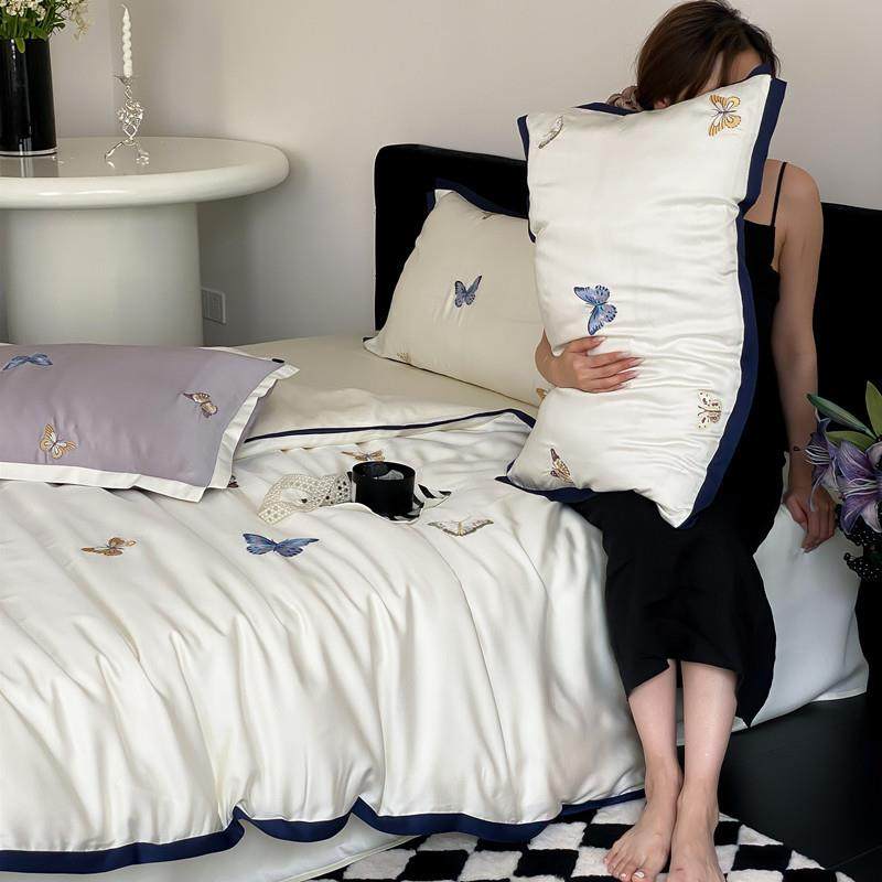 A类母婴级100兰精天丝四件套夏季冰丝床单被套刺绣床笠款床上用品