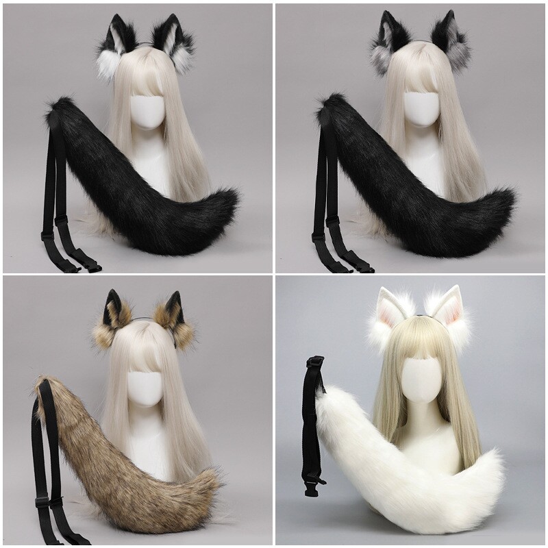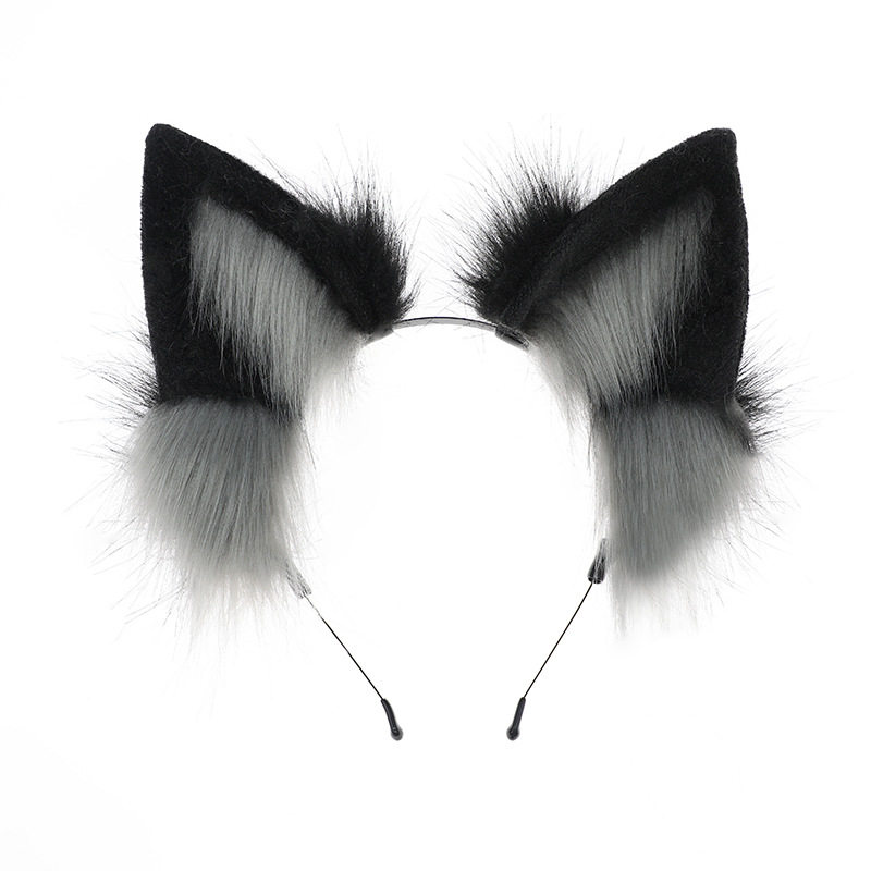 狼尾巴cos道具仿真兽耳头箍可爱毛绒装扮配饰恶狼孤狼发箍头饰