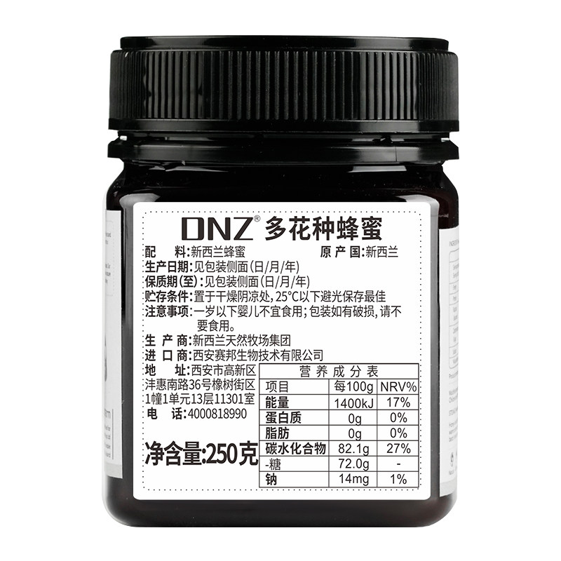 DNZ新西兰原装进口纯正百花多花种蜂蜜天然蜂蜜250g礼品