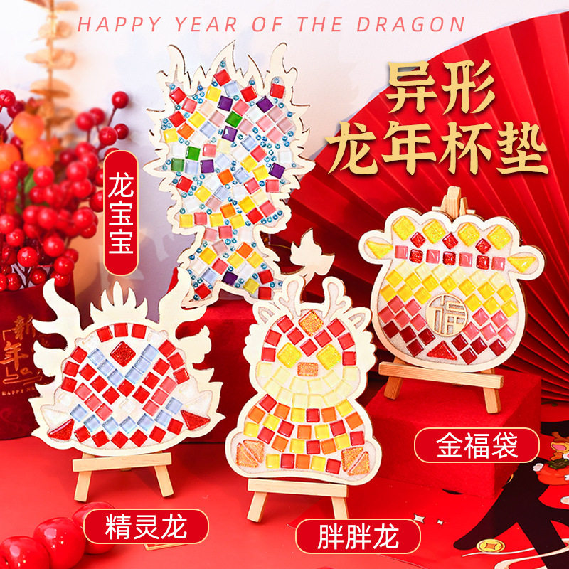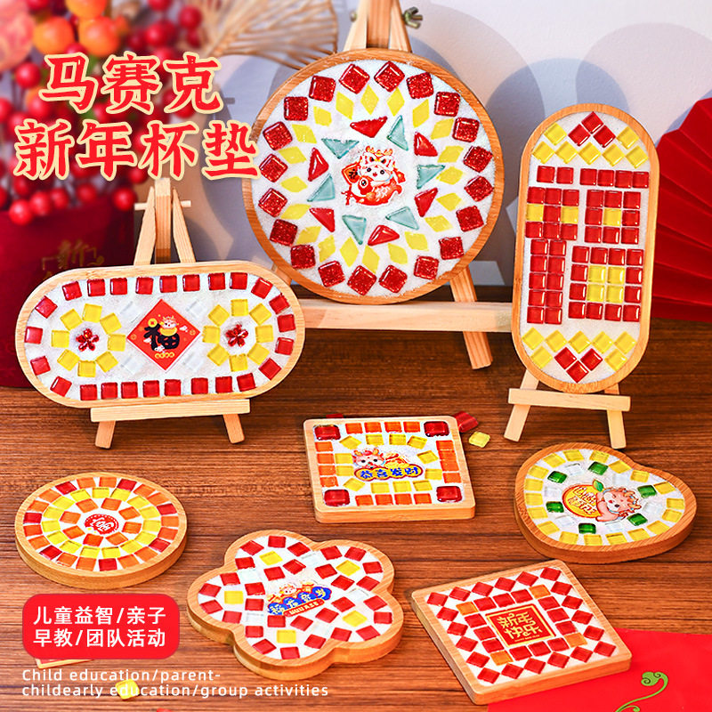 过年手工diy马赛克杯垫材料包幼儿园礼物亲子暖场儿童益智玩具