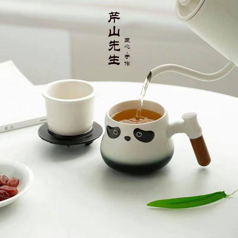 芹山创意新款带盖陶瓷马克杯茶水分离办公居家可爱茶咖杯实用泡茶