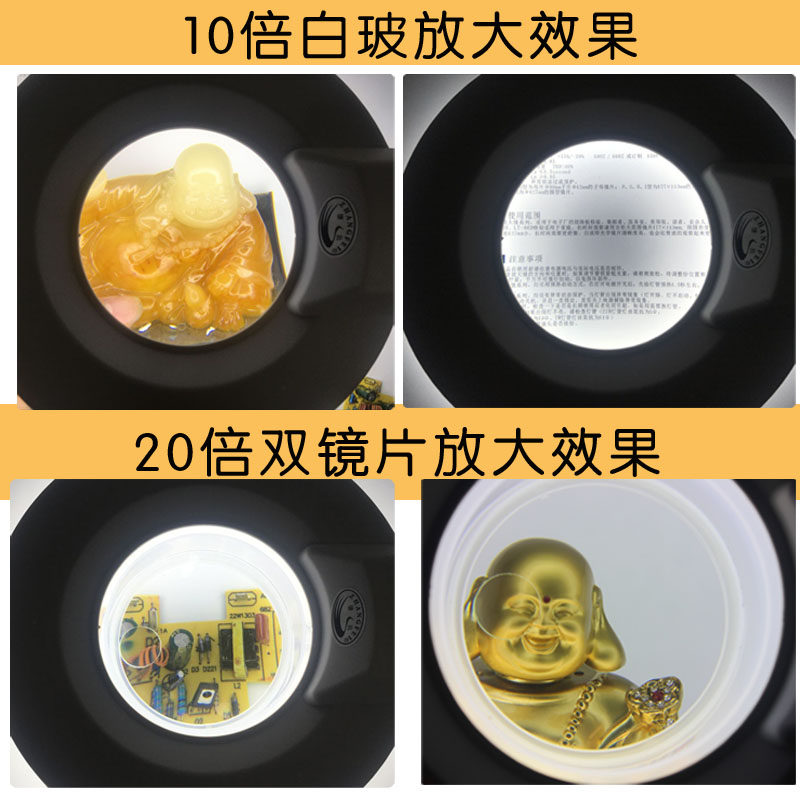 高清台式放大镜带灯LED10倍高倍20倍老人阅读鉴定修手.机维修台灯