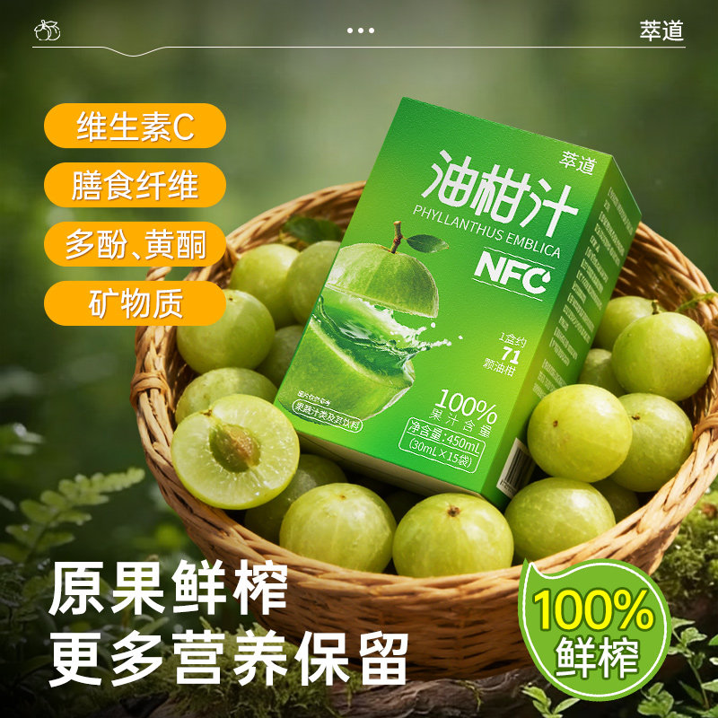 油柑汁NFC鲜榨果汁饮料潮汕特产0糖减脂肥低卡代餐零食物大餐救星