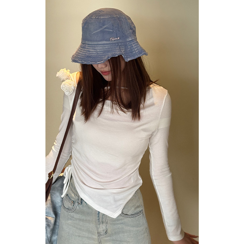 妖精的口袋水洗做旧毛边牛仔渔夫帽子女2026年春夏新款显脸小遮阳