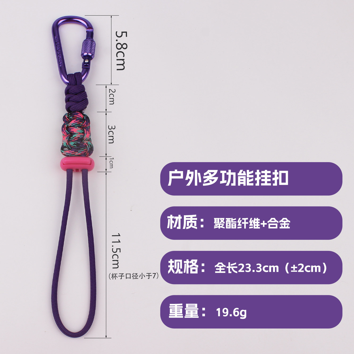户外伞绳登山扣背包水杯挂钩水瓶挂扣多功能挂绳徒步配件水壶扣带