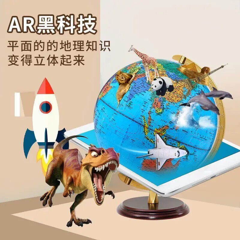 书香红袖地球仪AR带灯32cm超大号全新升级木底合金支架送五件套