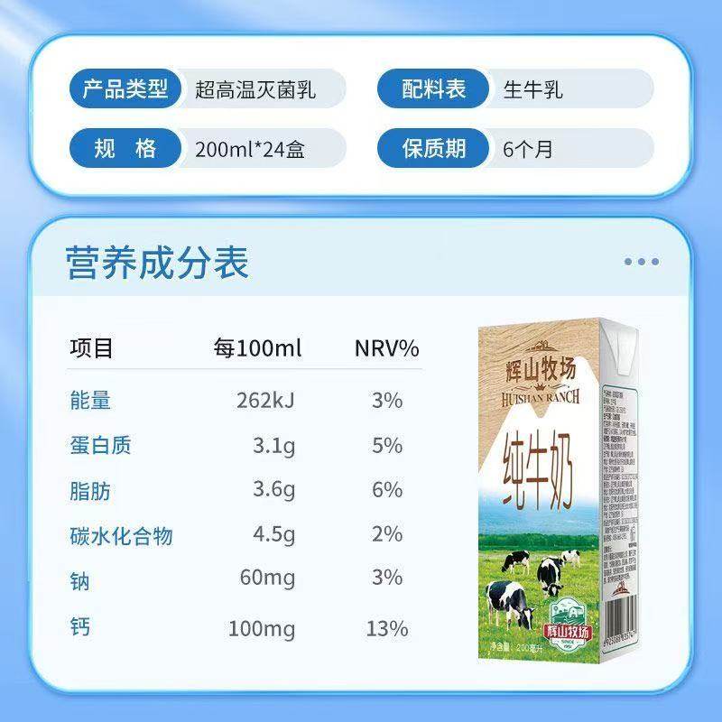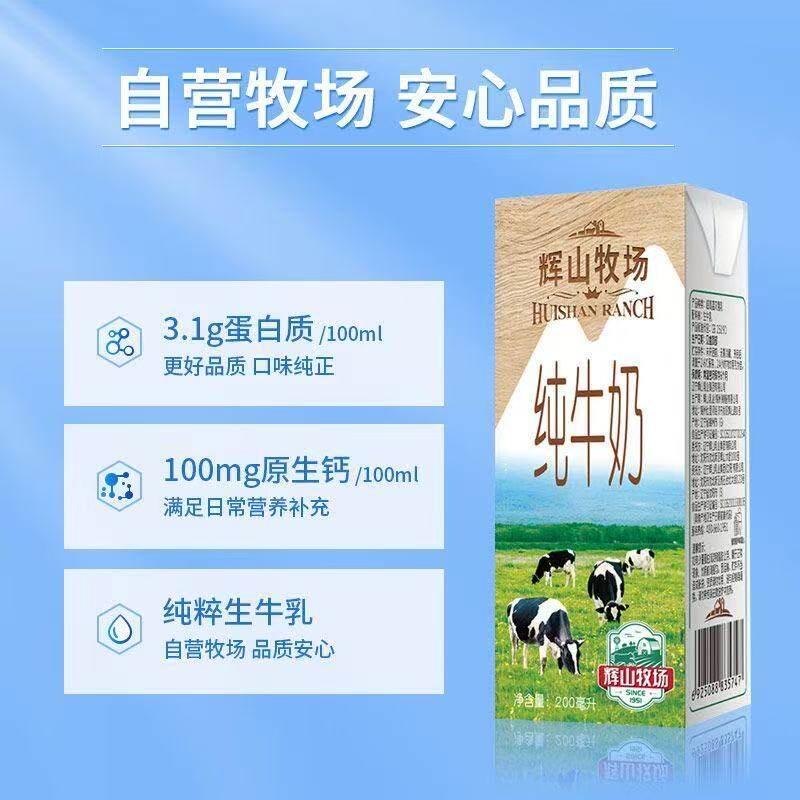 辉山牧场纯牛奶200ml*24盒共享健康早餐奶整箱每日盒装优质生牛乳