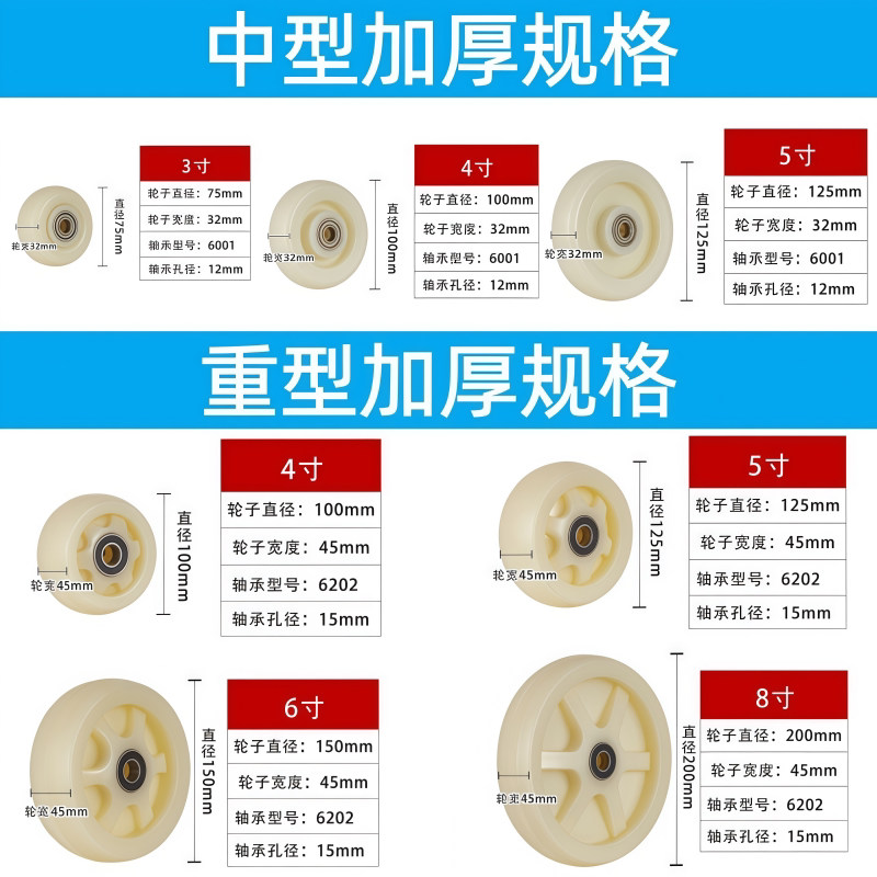 耐磨加厚尼龙万向轮子3寸4寸5寸6寸平板车手推车脚轮拖车滑轮轱辘