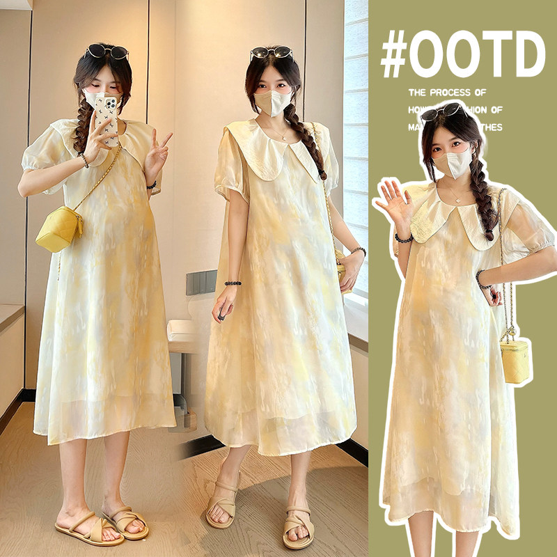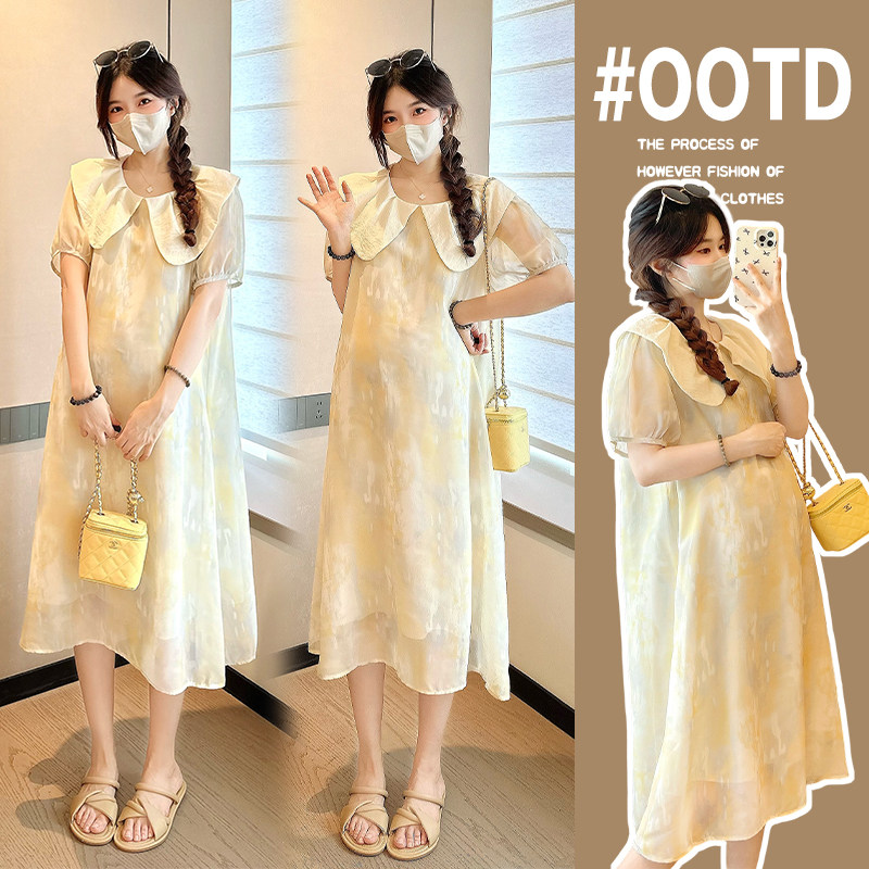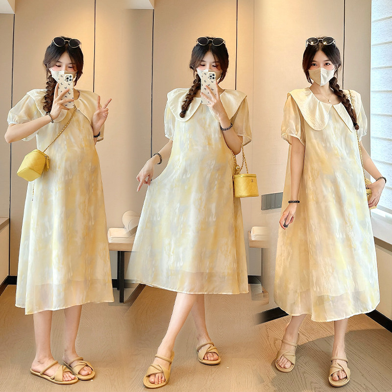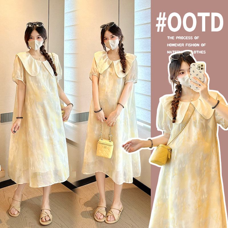 婧麒孕妇连衣裙宽松遮肚子显瘦甜美孕妇装娃娃领减龄孕妇裙中长裙