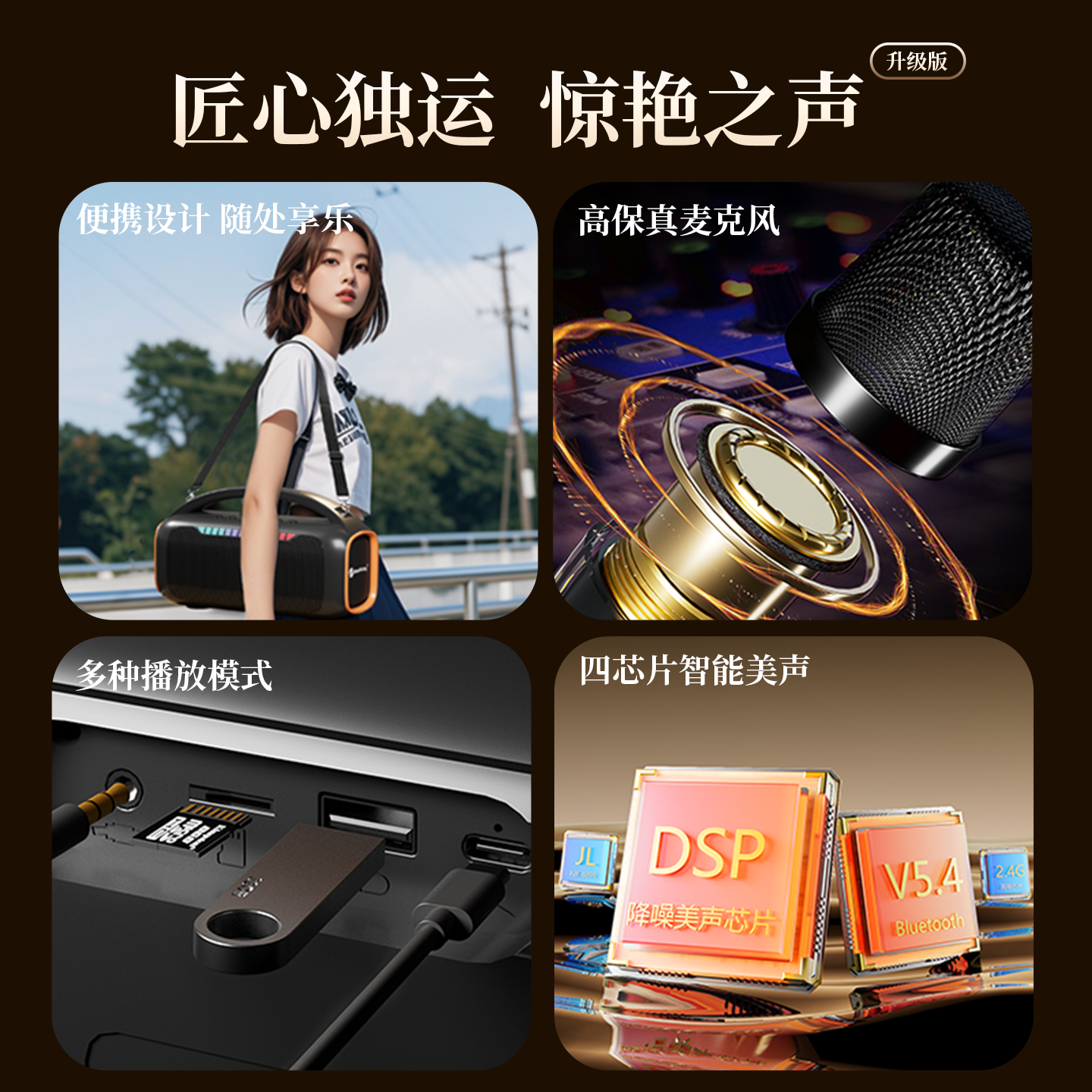 户外k歌话筒音响一体麦克风唱歌大音量广场舞家庭ktv蓝牙音箱套装