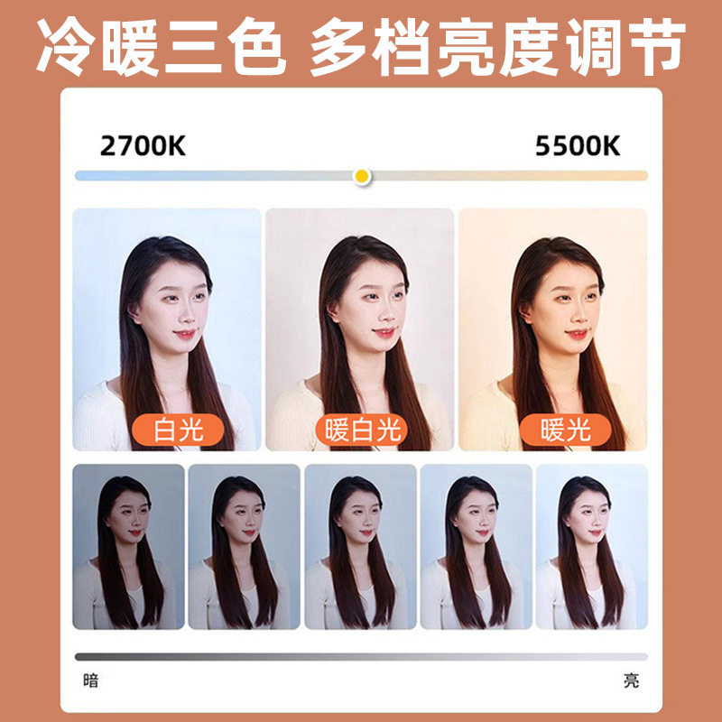 手机拍摄打光灯直播专用补光灯LED三色填充灯美颜便携桌面落地三角支架