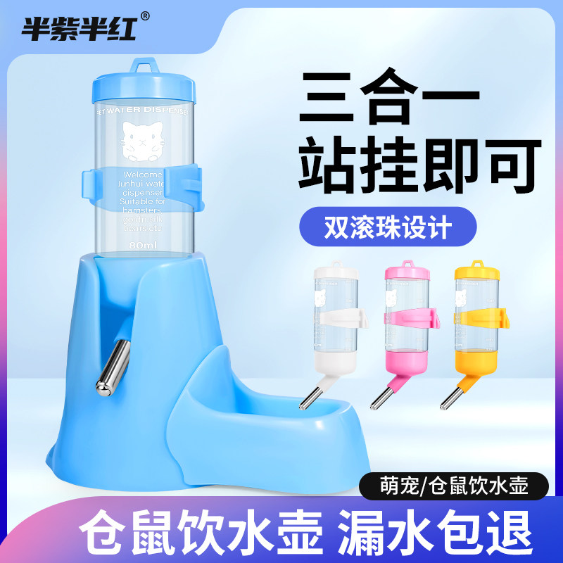 仓鼠水壶饮水器食盆喝水金丝熊饭碗三合一滚珠防漏花枝鼠用品水樽